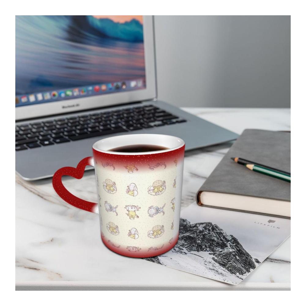 Fügen Sie Ihr Lieblings-Heißgetränk hinzu, um ein überraschendes Bild zu sehen. Bild aus Thermo-Grafiktinten, Tasse reagiert auf Hitze und enthüllt Kunstwerke. Wenn das Getränk abkühlt, wechseln die Grafiken wieder in den Originalzustand.