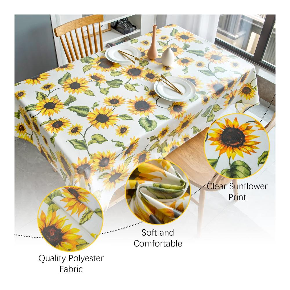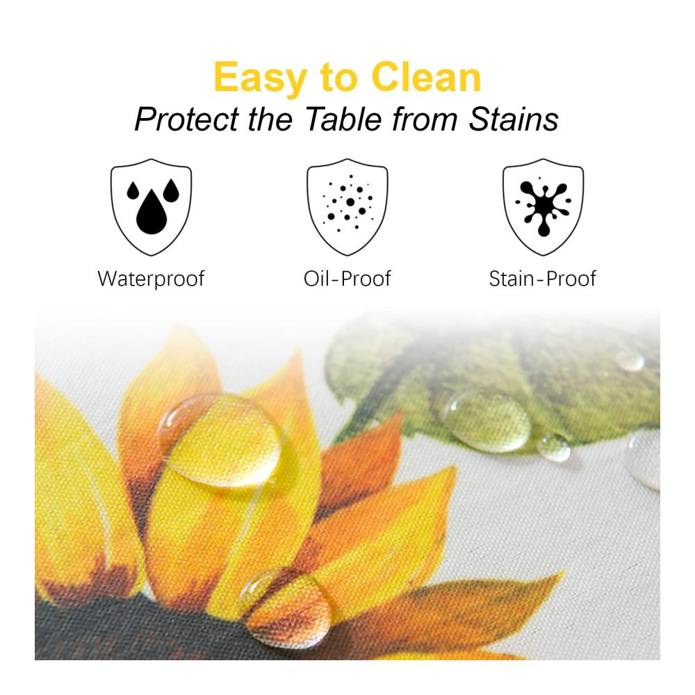 【Wasserdicht und knitterfrei】: Polyester-Tischdecke mit Blumenmuster ist weich und bequem, nicht fusselnd und sorgfältig entworfen, um das Eindringen von Flüssigkeiten effektiv zu verhindern, während der hochwertige Stoff die Sonnenblumen-Tischdecke knitterfreier als Tischdecken macht.