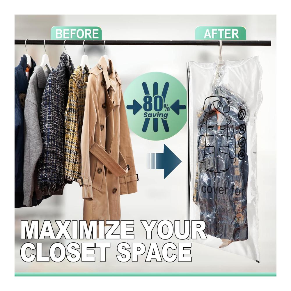 【Sparen Sie 80% Platz im Kleiderschrank】Sie erhalten 4 lange (135x70cm) Vakuumbeutel zur Aufbewahrung von Jacken und Kleidern, Warten auf kurze Kleidung. Diese Vakuum-Aufbewahrungsbeutel sind die beste Wahl, um 80% des Platzes in Ihrem Kleiderschrank zu sparen!