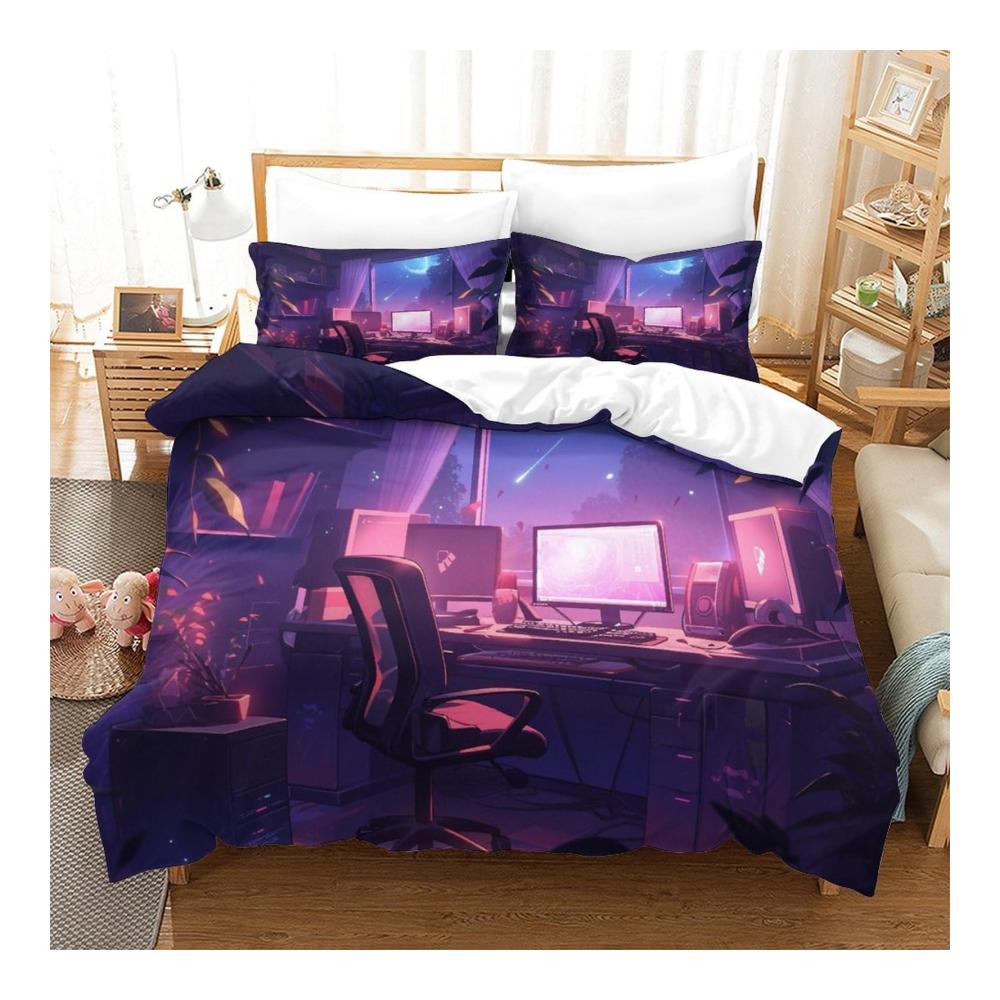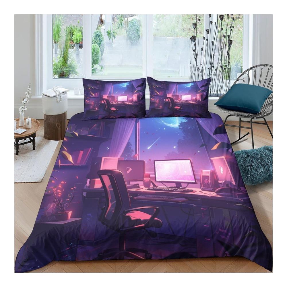 Tauchen Sie ein in Luxus mit unserem Gaming Room Bettwäsche-Set aus hochwertiger Mikrofaser! Der 3-teilige Bettbezug mit Reißverschluss und Kissenbezug für Kinder, Jungen, Mädchen und Doppelbetten (200x200cm) verleiht Ihrem Schlafplatz einen coolen Computer Room-Stil.