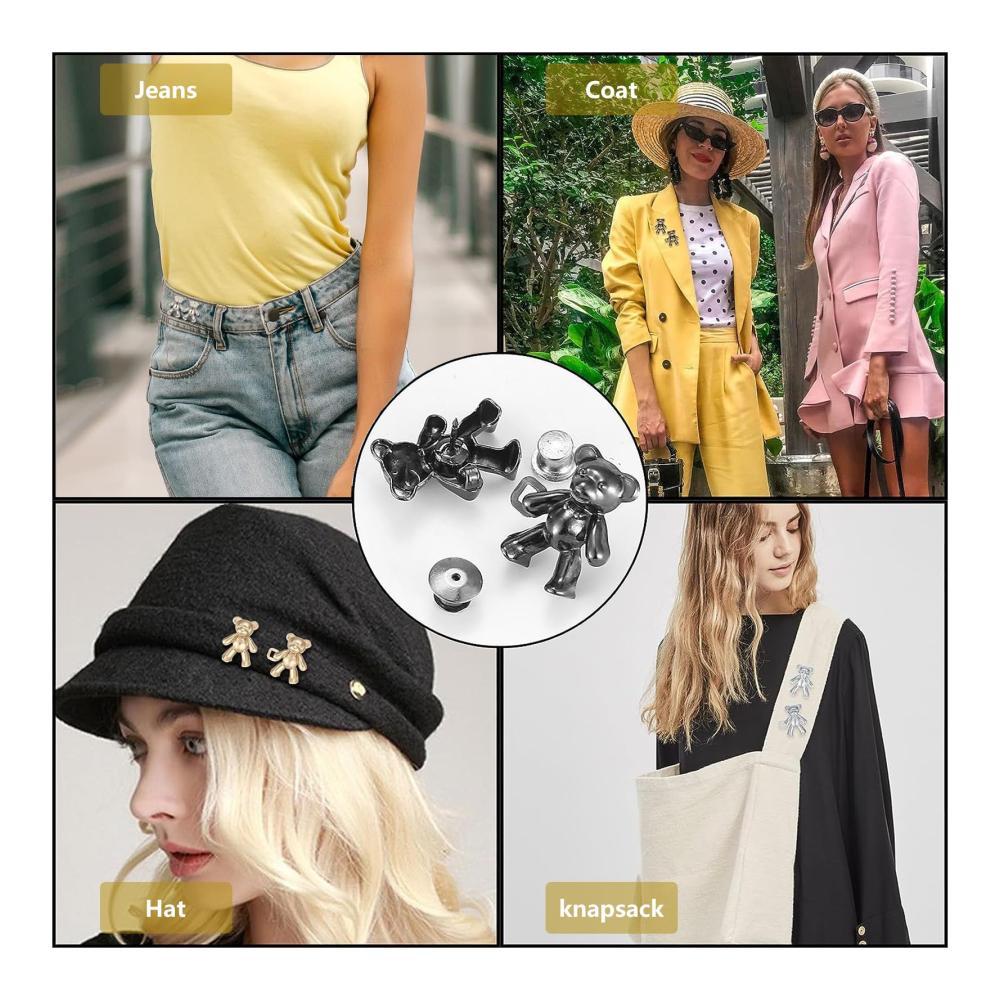 【Breite Anwendung】 Unsere Jeansknöpfe Zum Schrauben sind für Jeans, Hosen, Kragen, T-Shirts und Röcke geeignet, die zu groß sind.Beschädigt den Stoff nicht und die Größe kann angepasst werden.Niedliches Bärendesign kann für Frauen, Mädchen, Teenager usw passen.