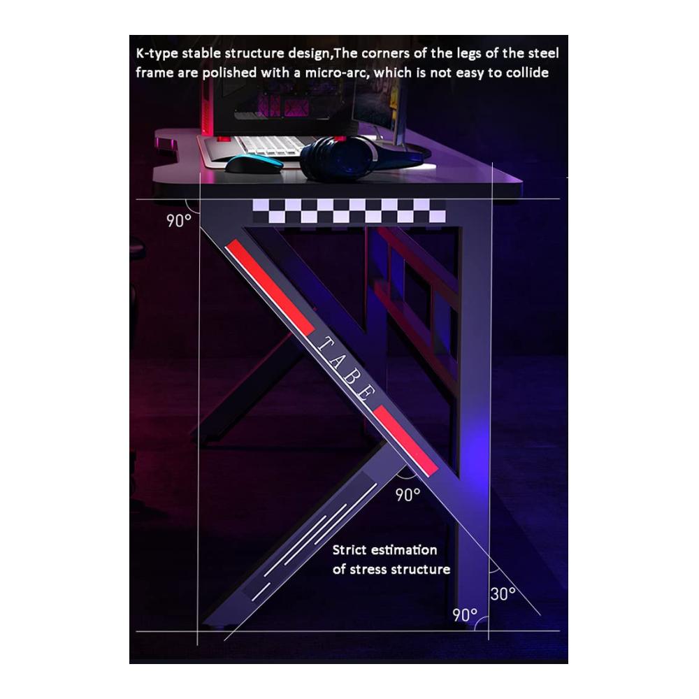 Erleben Sie höchsten Komfort und Funktionalität mit unserem Computertisch für Gamer und Büro. Dank der K-Form-Konstruktion aus robustem Metall und Holz bietet dieser Schreibtisch eine Tragfähigkeit von bis zu 150 kg und ist damit perfekt für Ihre Spieleausrüstung geeignet. Die großzügige Tischplatte mit Kohlefaserstruktur bietet ausreichend Platz für Monitore, PCs und Gaming-Zubehör. Zwei Kabelführungsösen sorgen für eine ordentliche Organisation Ihrer Kabel, während die glatte Oberfläche eine präzise Mausbewegung ermöglicht. Dieser Schreibtisch ist nicht nur funktional, sondern auch stilvoll und strapazierfähig. Bestellen Sie jetzt und erleben Sie unübertroffene Qualität!