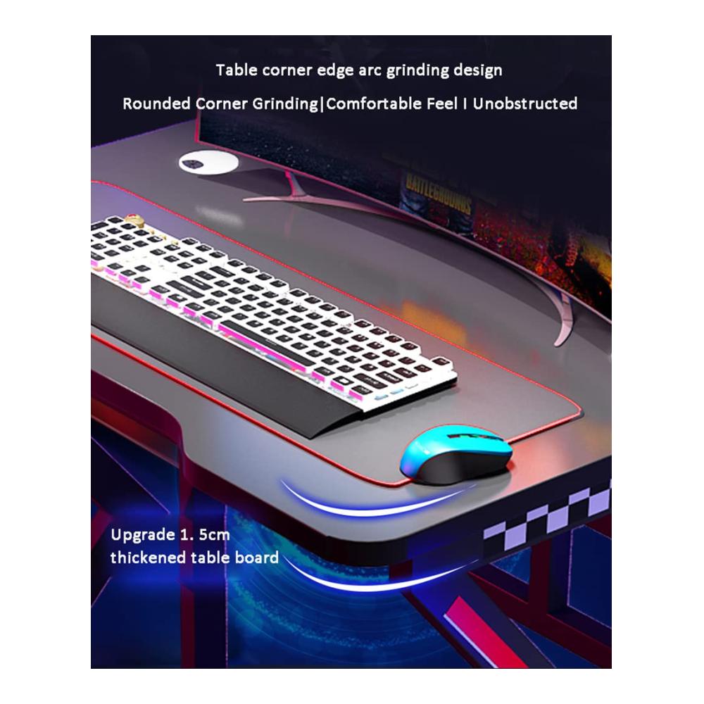 【Schreibtisch aus schwarzer Kohlefaser】 Die gesamte Oberseite des Schreibtisches besteht aus MDF mit glatter Kohlefaserstruktur, fühlt sich angenehm an, ist verschleißfest, rutschfest und kollisionssicher und verfügt über eine bessere Wasser- und Schweißbeständigkeit, sodass Sie dies nicht tun Benötigen Sie zusätzliche Matten, glatte Oberfläche, damit sich Ihre Maus frei bewegen kann