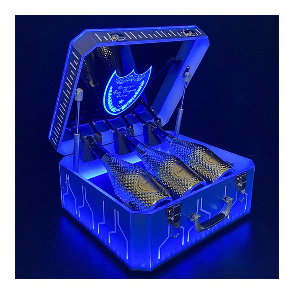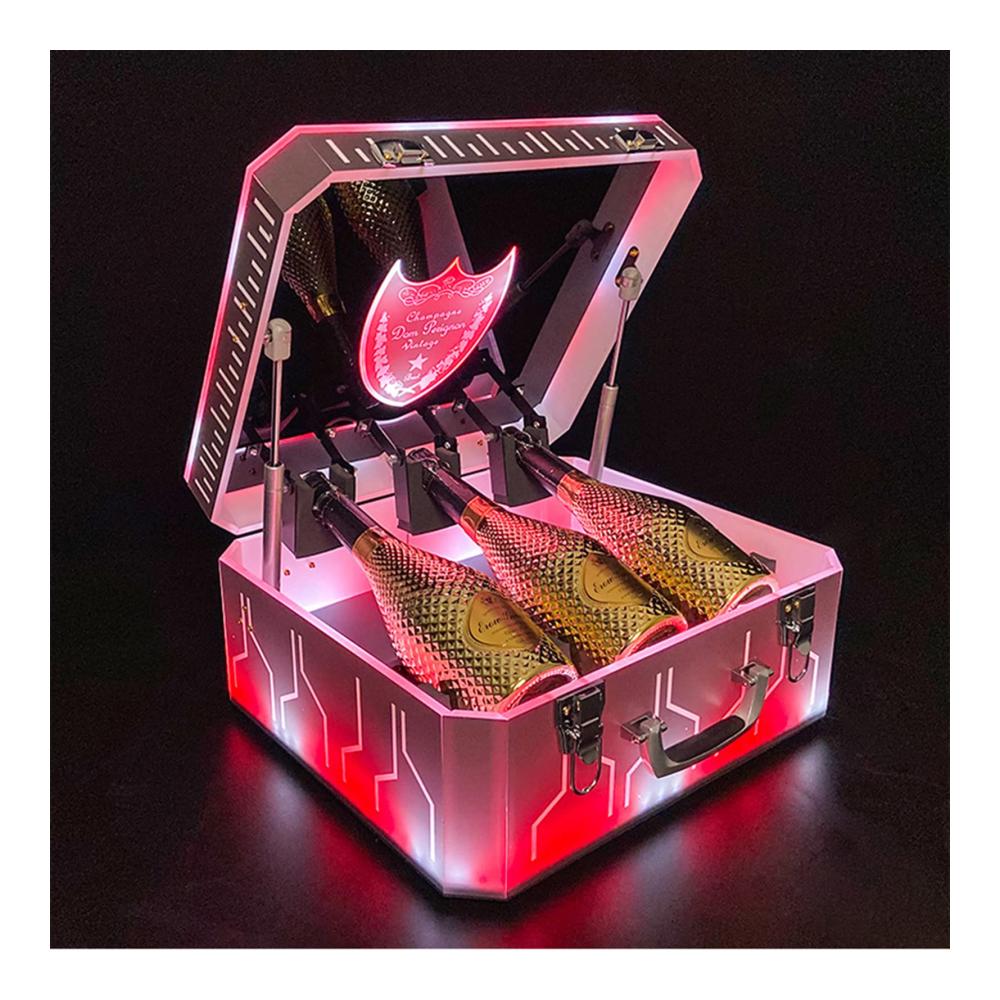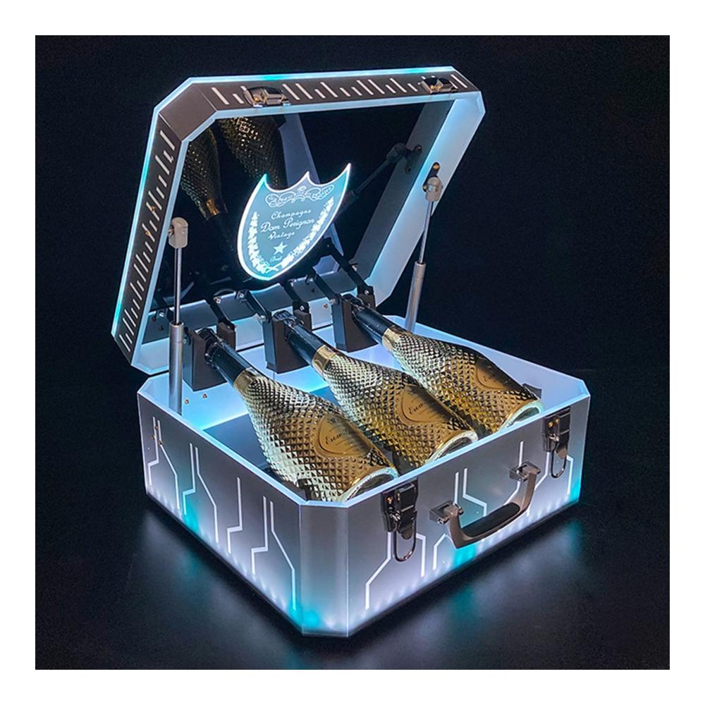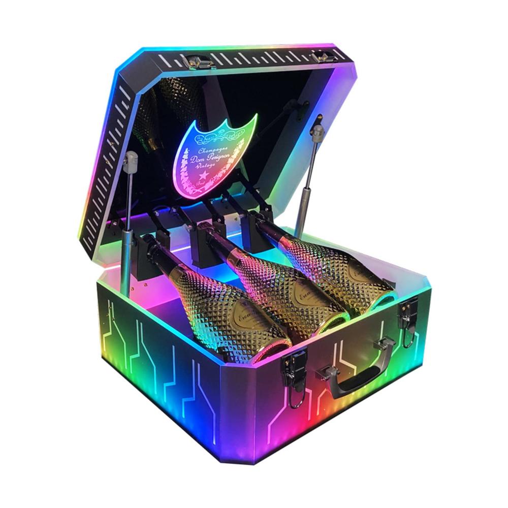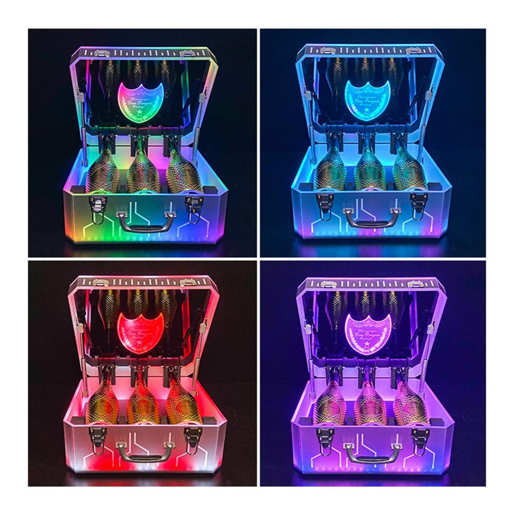 Schließen Sie das abnehmbare Netzteil an und die Weinbox schaltet automatisch auf farbige Lichter. Dieser LED-Weinflaschenständer ist perfekt für Partys, Bars, Zuhause, Küche, Nachtclub, KTV, Restaurant, Karneval oder Unterhaltungszentrum.