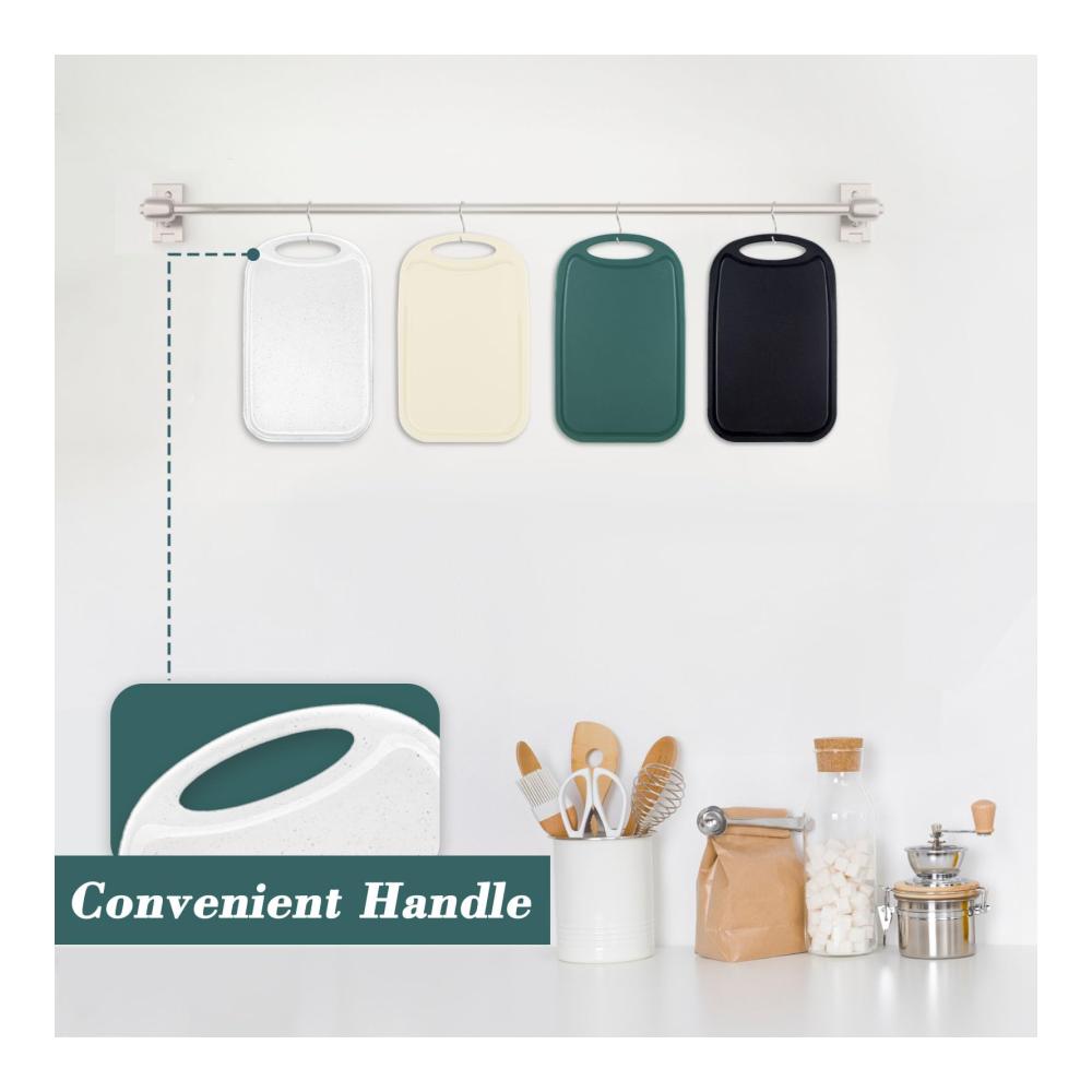 Das Design der Schneidebrett Kunststoff Set mit Haken und Löchern bietet Ihnen mehr Aufbewahrungsmöglichkeiten für Ihr Schneidebrett-Set. Wenn Sie sie nicht brauchen, können Sie sie platzsparend an die Wand hängen oder in einer Schublade aufbewahren, um Ihre Küche ordentlicher und schöner zu machen.