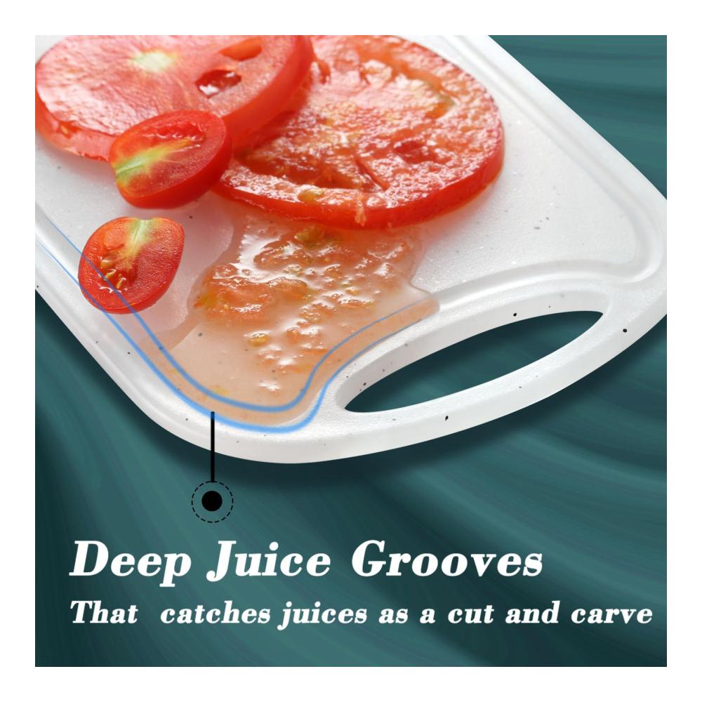 🎄【Modernes Design】Unser modernes und stilvolles Weiß Schneidebrett Kunststoff Design kann perfekt zu Ihrer Küche passen. Das Schneidbrett ist von einer Saftrille umgeben, so dass der Saft Ihre Küche nicht verunreinigt und sie immer sauber bleibt. Dieses kleine schwarze Schneidebrett eignet sich nicht nur als Frühstücksbrettchen, sondern auch als Mittagsbrett, Snack- und Zwischenmahlzeitsbrett und Kinderschneidebrett!