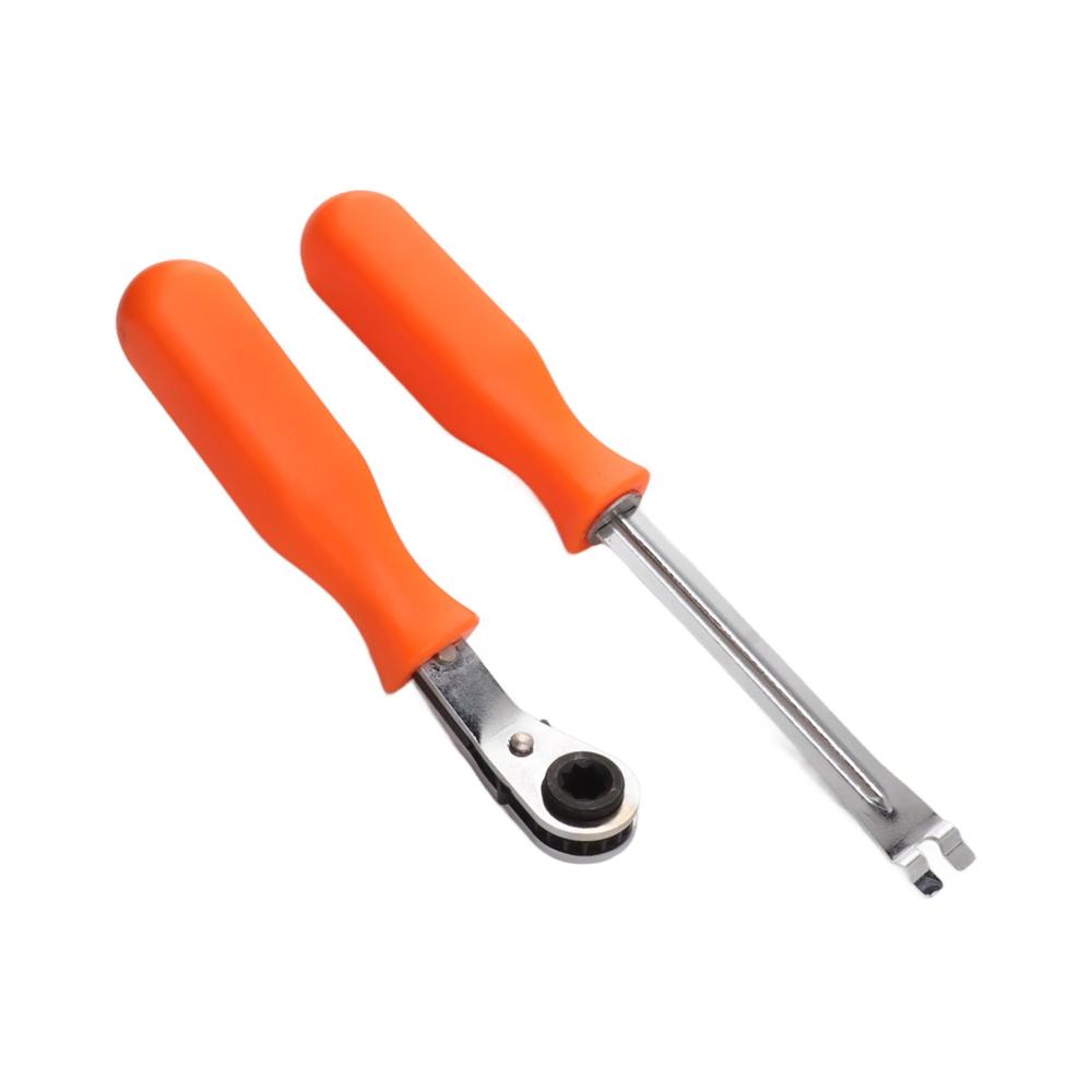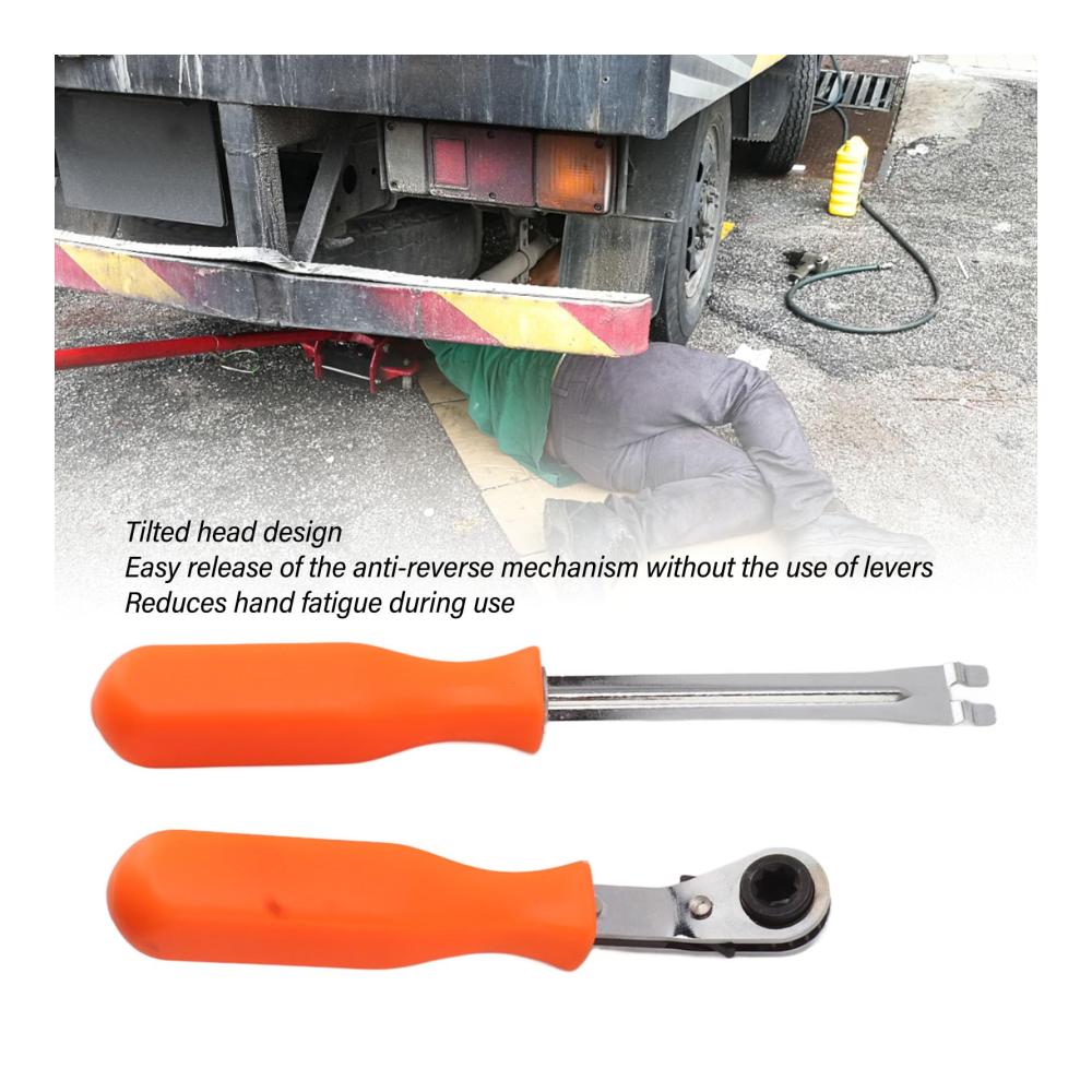[GESTÄNGEEINSTELLWERKZEUGE] Dieses Gestängesteller-Werkzeugset wurde für schwere Lastkraftwagen, Fernverkehrs-Lkw und Anhänger entwickelt und ist für die Installation und Wartung von Druckluftbremssystemen unerlässlich. Hergestellt aus legiertem Stahl mit Griffen aus thermoplastischem Gummi (TPR) für wirksamen Rutschschutz und verbesserter Komfort und Stabilität bei der Bremseinstellung.