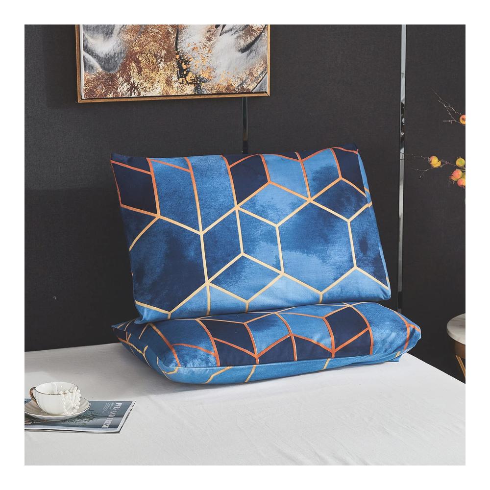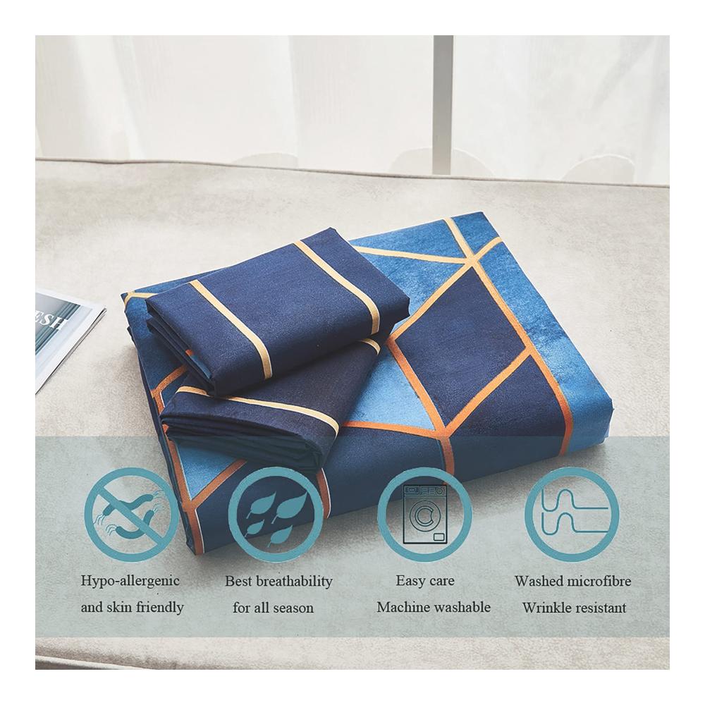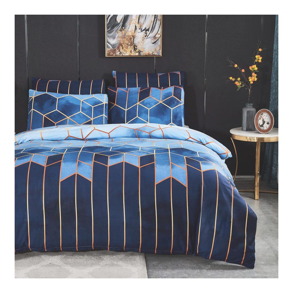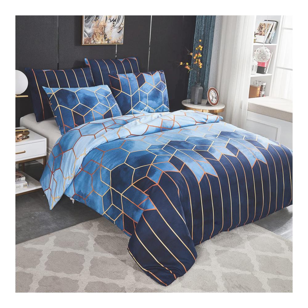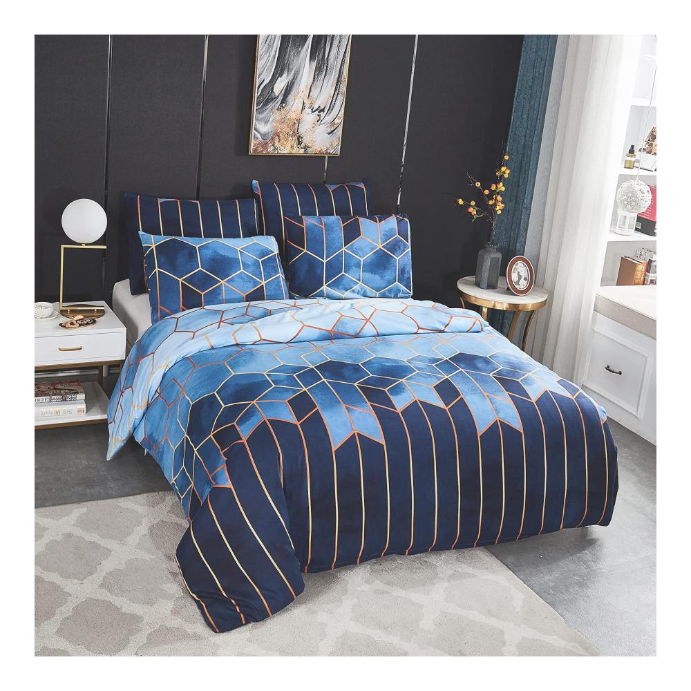 Dencalleus Bettbezug in Farbverlauf, ist ein sehr klassisches Design unter unseren Bettwäsche. Vintage aber original, verschönert und durch goldene grafische Linien getrennt, so dass der Bettbezug auf dem faszinierende geometrische Muster wie Viereck und Sechseck verteilt sind. Diese gedruckten Designs sind die Rückkehr eines Vintage-Stils, der sich leicht mit Ihrem Schlafzimmerdekor abstimmen lässt und Ihrem Schlafzimmer einen klassischen Look verleiht. Mit unserem Stoff aus Mikrofaser sorgt er für eine bessere Beständigkeit gegen Verblassen im Laufe der Zeit und Sie haben in einigen Jahren immer noch einen Bettbezug, dessen Farbe dieselbe helle wie heute ist.