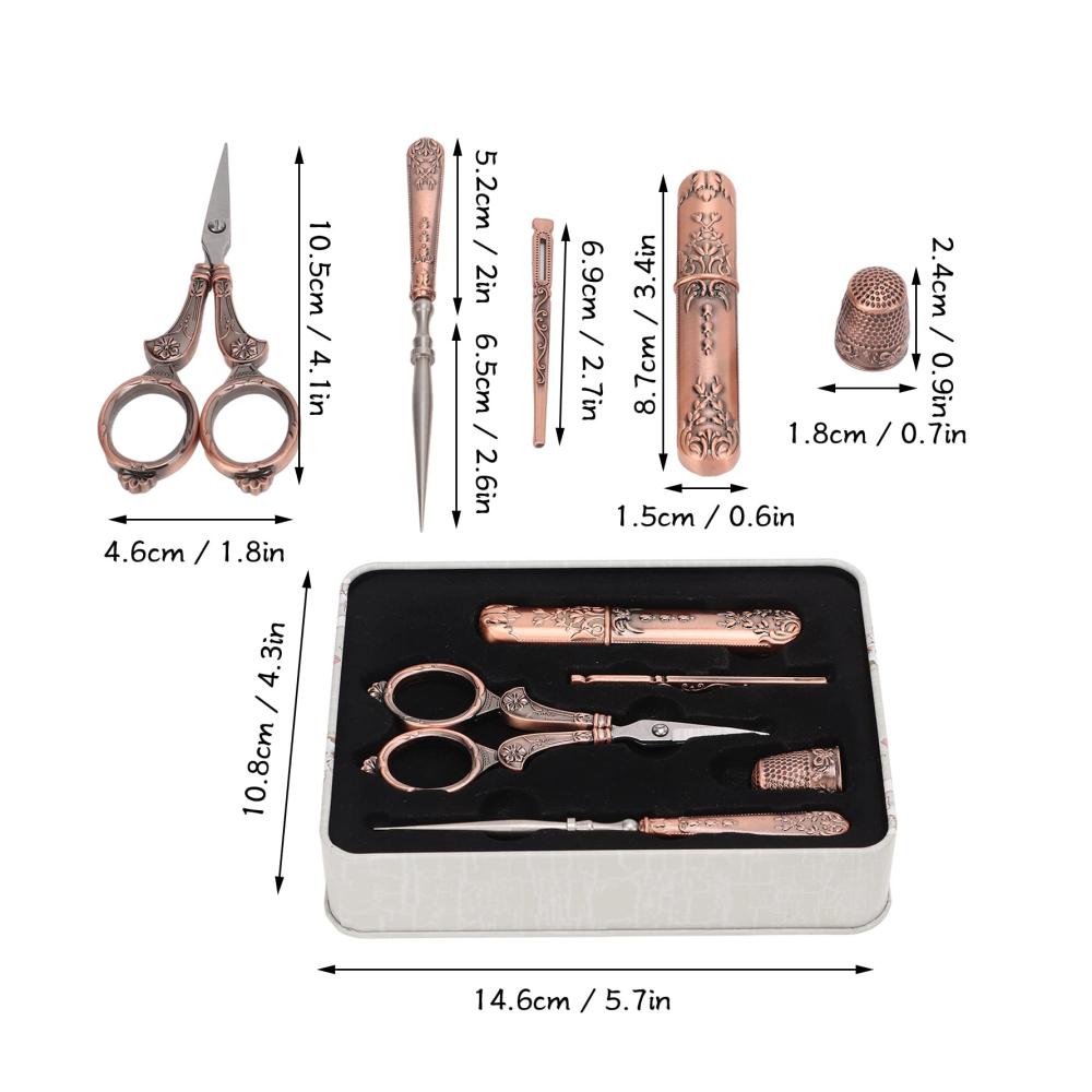 Material: Das viktorianische Handarbeits-Geschenkset besteht aus hochwertigem Edelstahlguss mit hoher Verschleißfestigkeit, Druckfestigkeit, nicht verblassender, prägnanter und langlebiger Schere sowie feiner Verarbeitung.