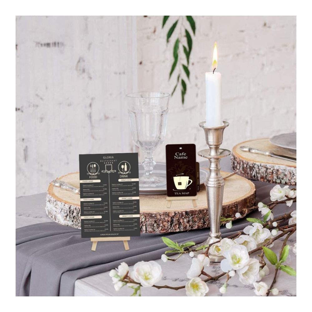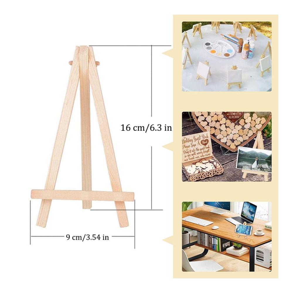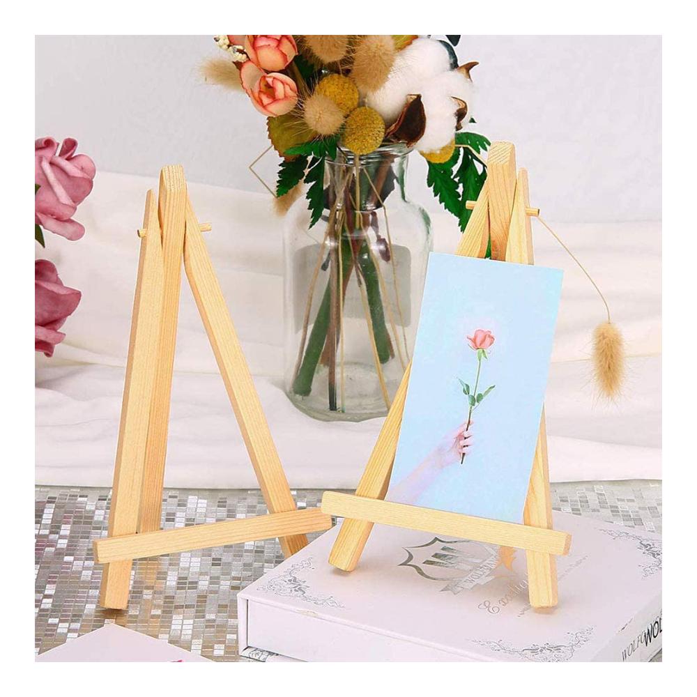 Weit verbreitet: Sie können diese hölzernen Staffeleien verwenden, um kleine Kunstwerke wie Karten, Menüs, Bilder, kleine Gemälde, Fotos und sogar Inhaber von Visitenkarten für Hochzeiten anzuzeigen.