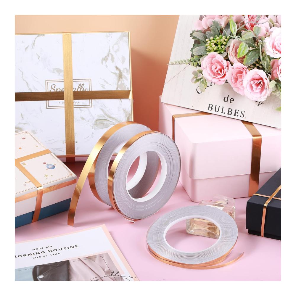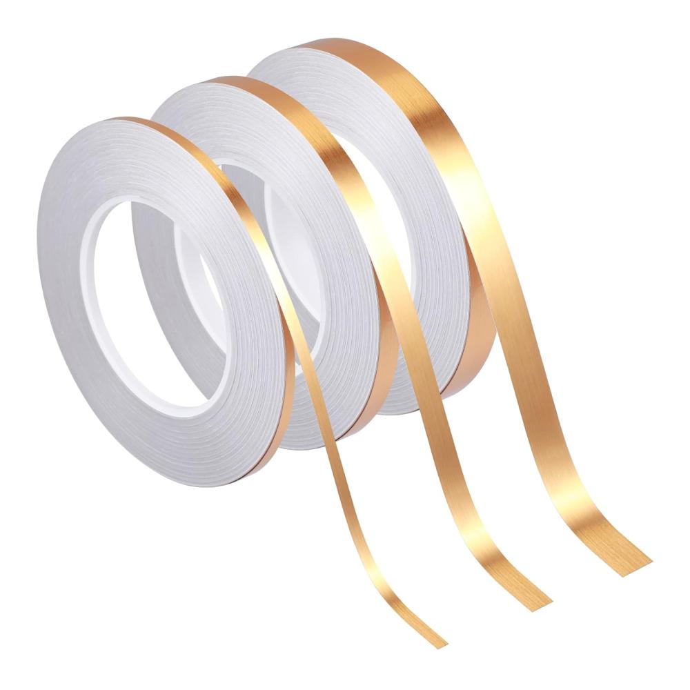 Unsere 3 Rollen Metallic Klebebänder Gold sind mehr als nur gewöhnliche Zierstreifen. Hergestellt aus hochwertiger Polyesterfolie, bieten sie nicht nur eine elegante Farbe, sondern auch eine Vielzahl von Anwendungen.