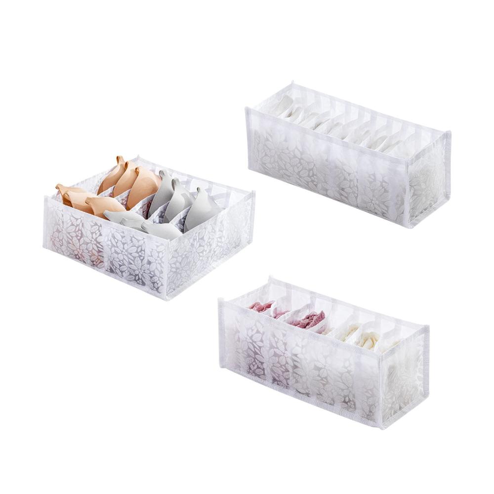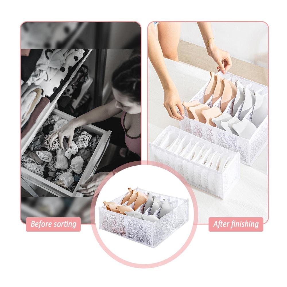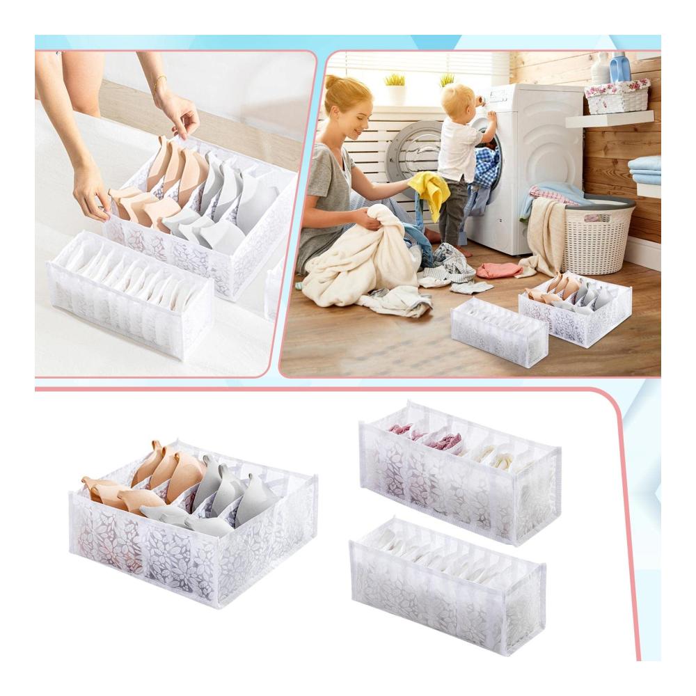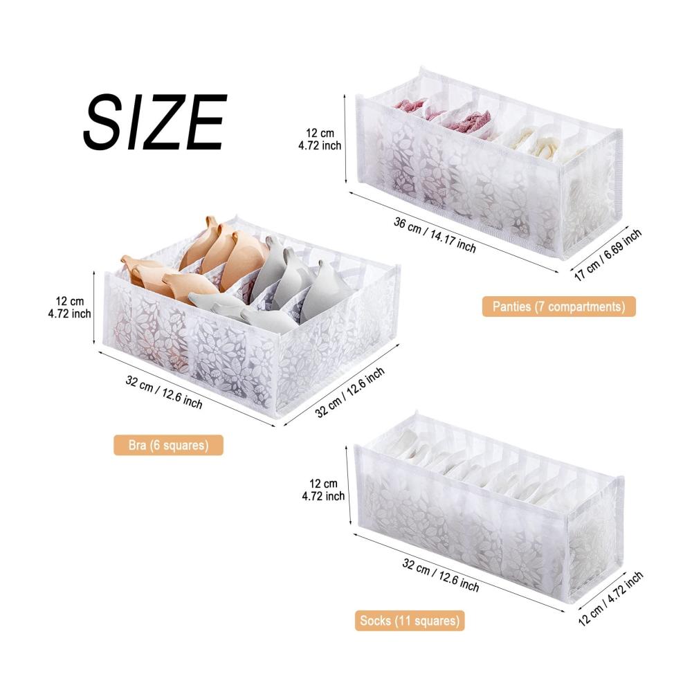 Größe:A. BH Gitter: 32×32×12 cm/12,60×12,60×4,72 B. Unterhosen 7 Gitter: 32×12×12 cm/12,60×4,72×4,72 Socken 11 Gitter: 32×12×12 cm/12,60×4,72×4,72 Material: NetzZu den Produkten gehören: 3x Aufbewahrungsbox