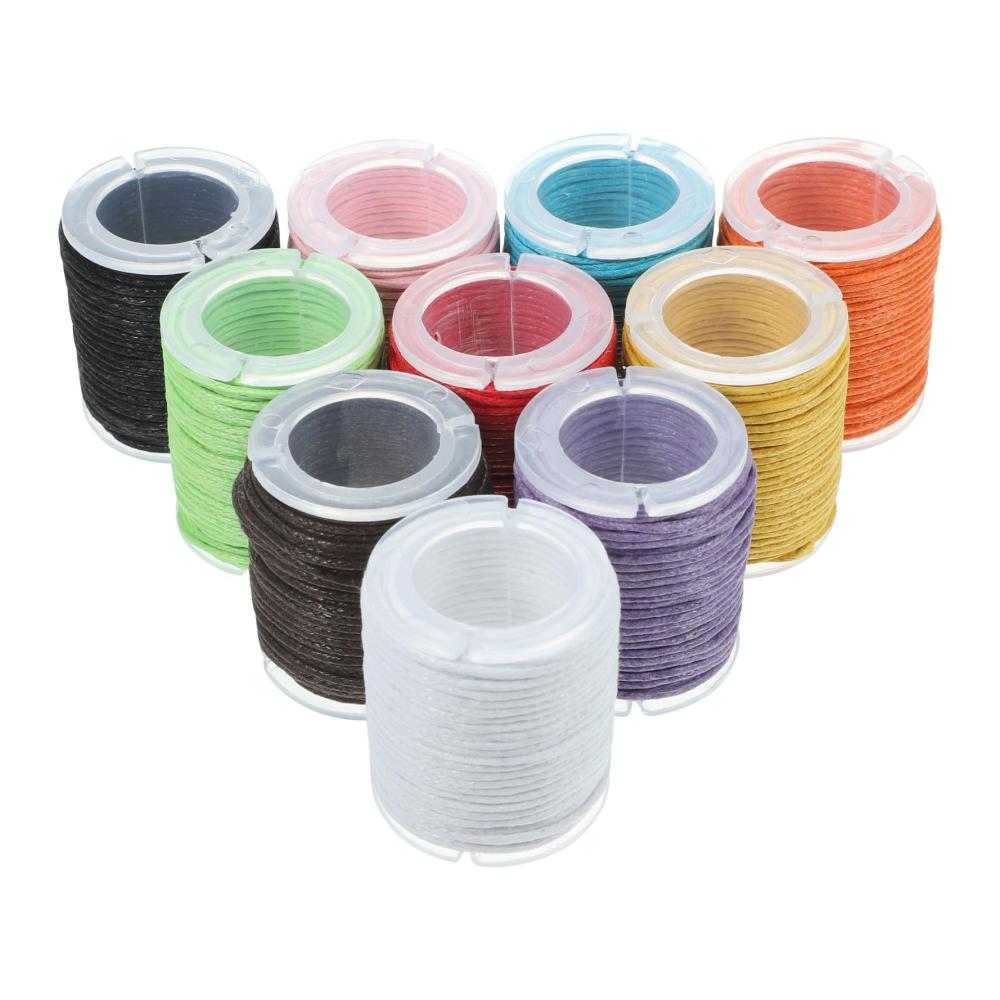 Dieses Set mit 10 Rollen gewachster Baumwollschnur bietet vielseitige Möglichkeiten für kreative Projekte. Jede Rolle enthält ca. 10 Meter langlebige, weiche Baumwollkordel mit einem Durchmesser von etwa 1mm. Die dicht gewebte Kordel eignet sich ideal für DIY-Armbänder, Halsketten, Perlenschnüre, Handnähen und Lederarbeiten. Dank ihres einfachen und praktischen Designs sind sie einfach zu verwenden. Perfekt für Schmuckherstellung und mehr.