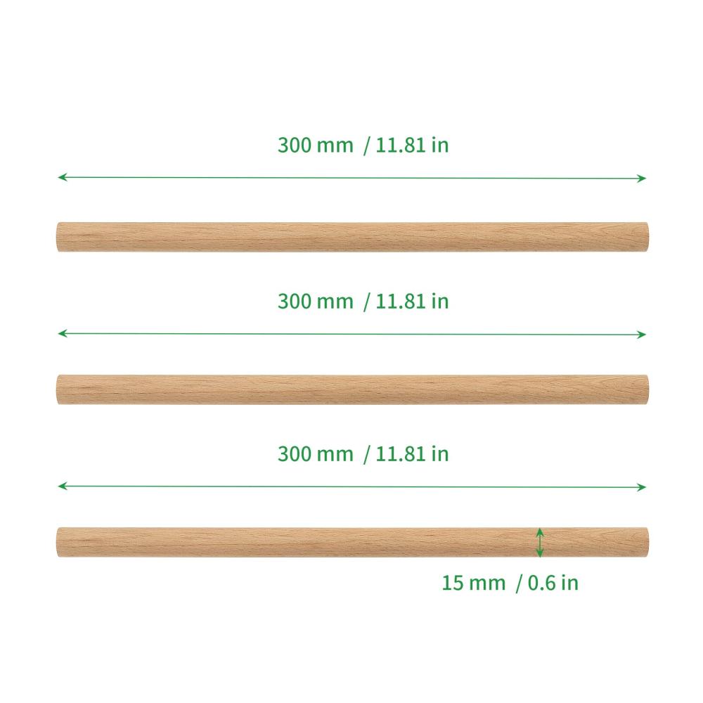 Größeninformation: Insgesamt 30 Stück 15 mm Holzdübelstangen sind im Lieferumfang enthalten, jede mit einer Gesamtlänge von 30 cm und einem Durchmesser von 1,5 cm, die dick und hart aber nicht sperrig ist. Sie sind sehr stabil und brechen nicht leicht.
