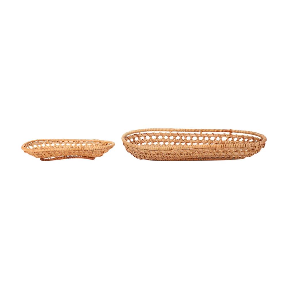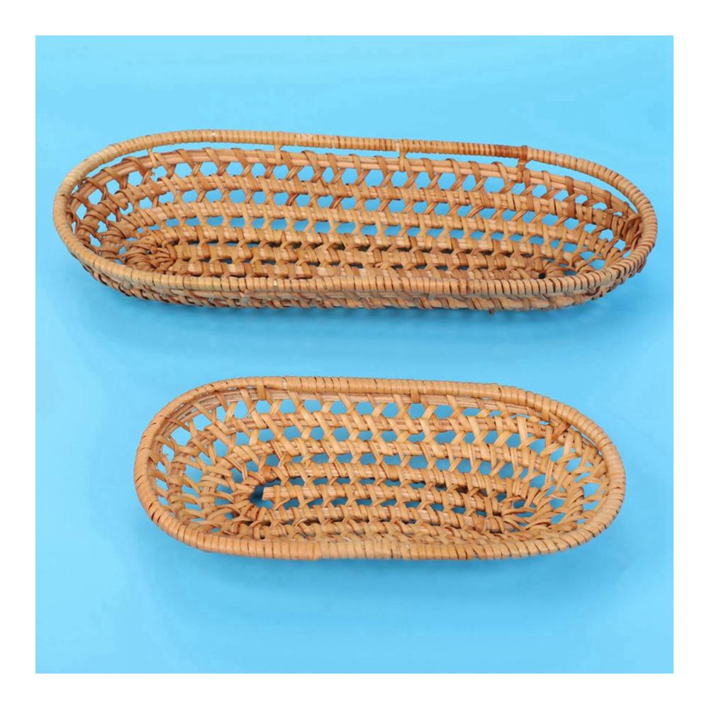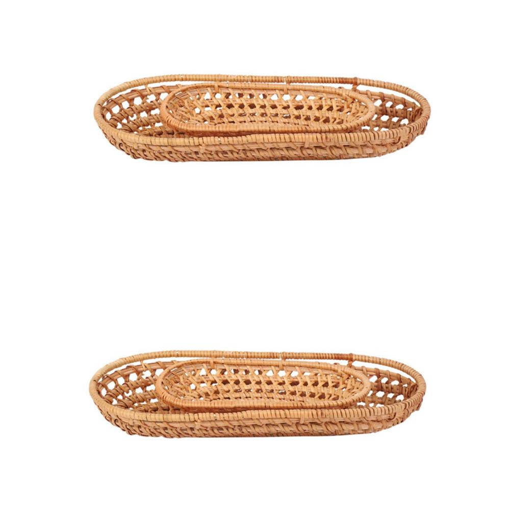 Geben Sie Ihrem Zuhause mit diesem 4-teiligen handgefertigten Set aus gewebten ovalen Rattan-Brotkörben einen modischen und praktischen Touch. Das offene Design ermöglicht eine ansprechende Präsentation von Brot, Obst und Utensilien. Diese Aufbewahrungskörbe sind nicht nur dekorativ, sondern auch funktional. Perfekt für Küche, Wohnzimmer oder Einzelhandelsgeschäft. Hergestellt aus hochwertigem und umweltfreundlichem Material, bieten sie Leichtigkeit, Langlebigkeit und Stabilität. Verleihen Sie Ihrem Raum mit natürlichen Farben und einem klassischen Look eine zeitlose Eleganz.