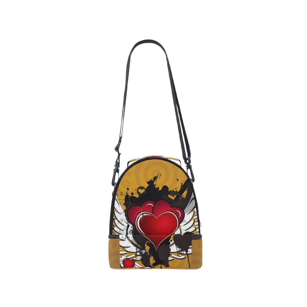 Diese isolierte Lunch-Tasche mit Flügelherz-Design ist perfekt, um Ihre Speisen frisch zu halten. Hergestellt aus hochwertigem gezwirntem Gewebe und Aluminiumfolie für eine Wärmedämmung von ca. 5 Stunden. Mit einer Größe von 26,7 x 11,4 x 21,6 cm und einem isolierten Innenraum ist sie ideal für Mittagessen, Snacks, Picknicks oder Einkäufe. Diese Lunchtasche ist wasserdicht und verwendet BPA-freie Materialien. Bitte beachten Sie, dass sie nicht maschinenwaschbar ist und Farben leicht vom Druck abweichen können. Ca. 1-2 cm Fehler