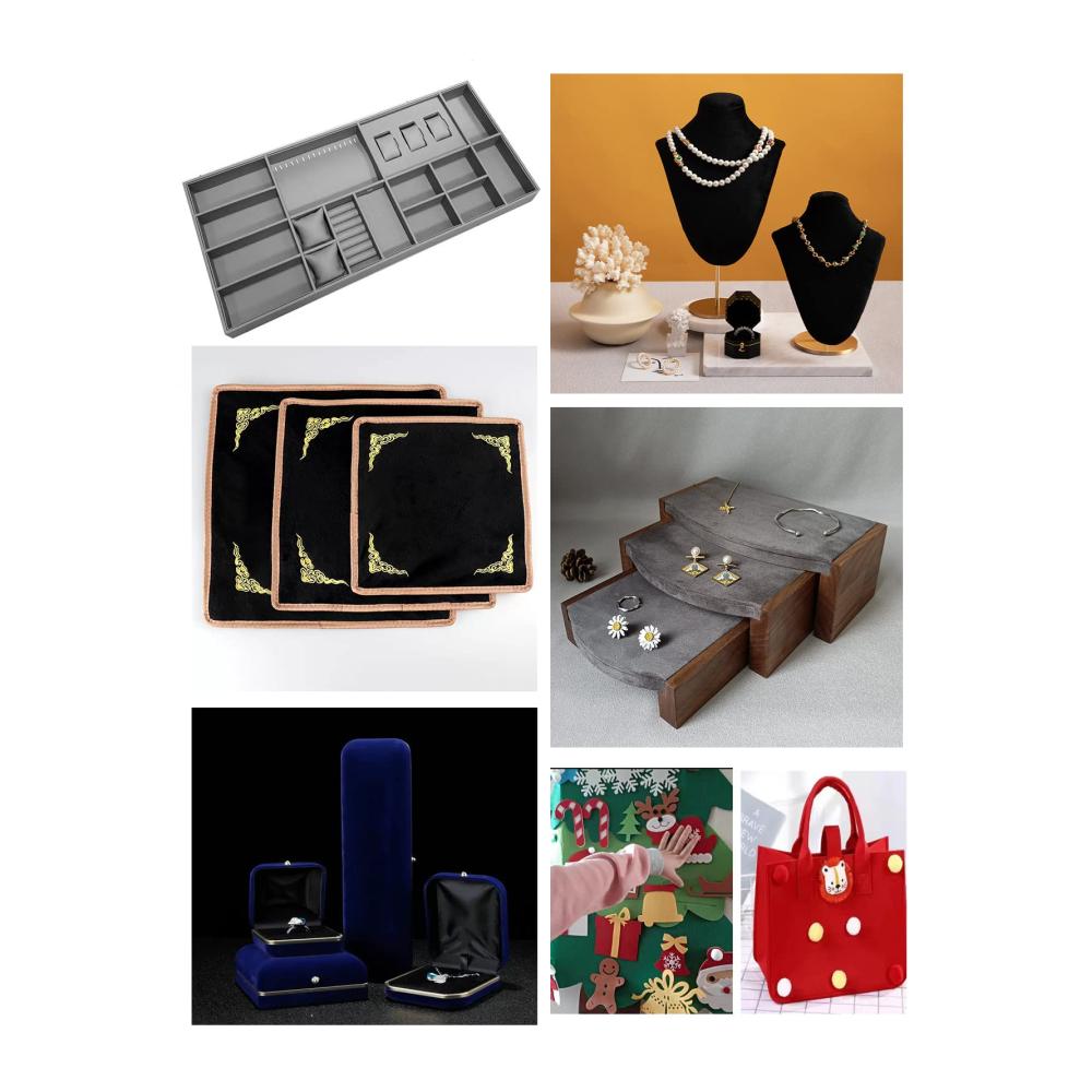 selbstklebender Samtstoff wird häufig in DIY-Projekten, Kunsthandwerk, Schmuckschuppschränken, Augenboxen, Fotorahmenboxen, Boutique-Displayschränken oder einer Verpackungs Hintergrunddekoration verwendet, insbesondere für hochwertige Produkte oder Sammlungen.