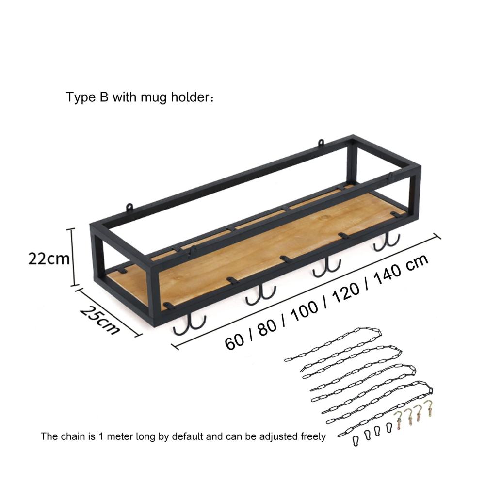 Moderner, kreativer Kelchhalter aus Eisenkunst an der Decke, genießen Sie ein komfortables und einfaches Leben. Handgefertigt, einfach zu installieren, schön und großzügig. Geeignet für verschiedene Szenen, Weingüter, Alltag, Bars, Handel, Unterhaltung. Die Anzahl der Getränkehalter unten wird entsprechend der Länge des Regals angepasst. Wenn Sie Beratung oder Anpassung benötigen, können Sie uns per E-Mail kontaktieren.