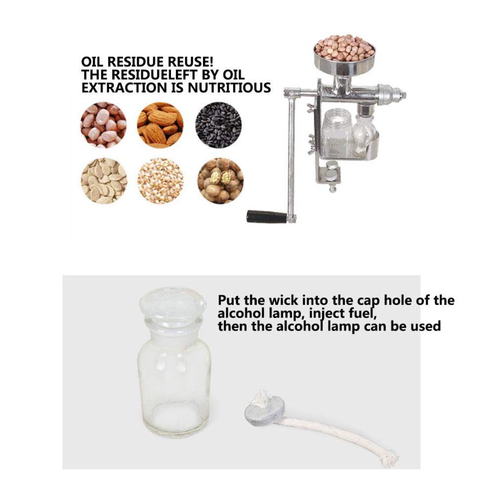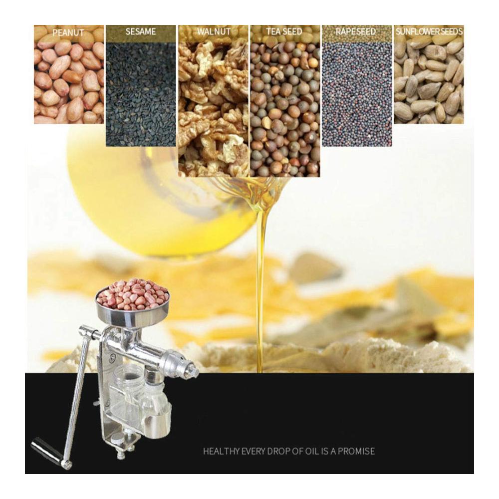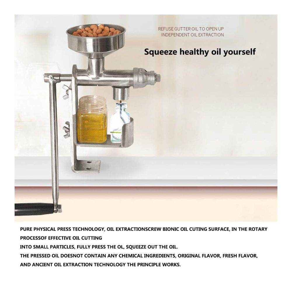 3–5 kg/Stunde Kapazität Home Mini manuelle Ölmühlenmaschine/Ölpressmaschine: geeignet für den größten Teil des Ölgehalts ist mehr als 25 % der Ölpflanzen Name: Hand aus Edelstahl Kurbelölpresse Material: Edelstahl 304 Einzelpackungsgröße: 42*8*32 cm/Set Gewicht der gesamten Maschine: 3 kg Abmessungen: 375*305*75 mm 3. Das Wetter ist heiß. Nachdem die Alkohollampe längere Zeit erhitzt wurde, kann die Alkohollampe eine Weile ausgeblasen werden, um das Öl nicht zu überhitzen und das Öl zu backen. Nachdem die Temperatur weiter gesunken ist, wird die Alkohollampe gezündet, wenn eine Erwärmung erforderlich ist. 4. Wenn das Öl beginnt, Abfall aus den beiden kleinen Löchern im Schwanz zu entfernen, enthält der Ölrückstand mehr Öl. Nachdem das Band im Normalbetrieb ist (der Ölrückstand ist braun), kann der ölige Ölrückstand erneut gepresst werden. Wenn der Anfang des Hecks nicht vollständig mit Öl gefüllt ist, kann die Geschwindigkeit schneller sein.