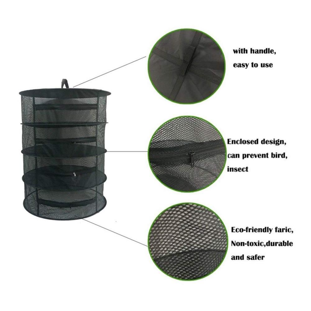 Unser Hängeregal Trockennetz bietet die ideale Lösung für das Trocknen Ihrer Ernte! Hergestellt aus atmungsaktivem High-Density-Nylon-Mesh und einem robusten Stahldrahtring für stabilen Halt. Dank des faltbaren Designs ist es leicht zu transportieren und nimmt wenig Platz ein. Die umschlossene Bauweise mit Reißverschlüssen schützt effektiv vor Insekten. Einfach zu montieren und vielseitig einsetzbar – perfekt für Hydroponik, Kräuter, Blumen und Gemüse. Hängen Sie es einfach auf, um Ihre Ernte schnell und einfach zu trocknen.