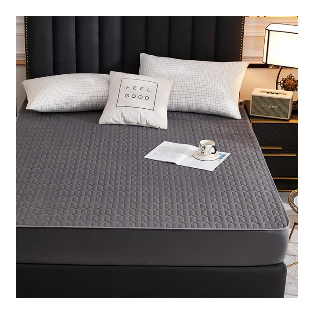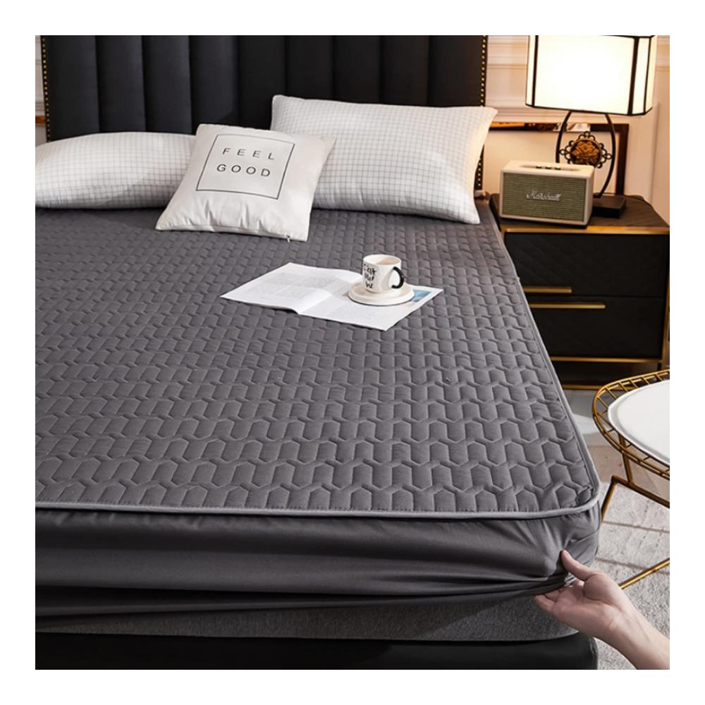 Material: Polyester-Baumwolle, wasserdicht. Weich und bequem, feuchtigkeitsabsorbierend und atmungsaktiv, hautfreundlicher Stoff, gesteppte Steppung, gebürsteter Stoff auf der Vorderseite und wasserdichte TPU-Membran auf der Rückseite. 360-Grad-Rundumwicklung, C-förmiges festes Gummibanddesign rundum, pflegeleicht. Geeignet für Matratzen von 5-28 cm. Paket enthält Spannbettlaken * 1 ohne Kissenbezug