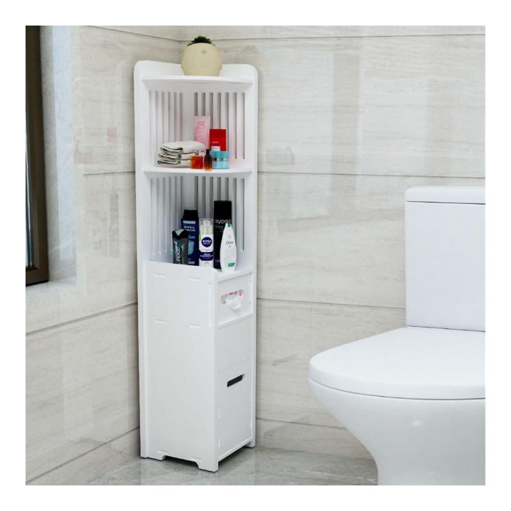 Unser Hoch- & Midischränke Badezimmereckregal vereint modernes Design mit funktionaler Vielseitigkeit. Ausgestattet mit 3 offenen Regalen, einer herausziehbaren Taschentuchbox und einem versteckten Mülleimer bietet dieser schmale Medizinschrank cleveren Stauraum für Ihr Zuhause. Die schlanke Bauweise passt perfekt in enge Bereiche im Badezimmer, Wohnzimmer, Schlafzimmer oder Flur und bietet dennoch ausreichend Platz für Ihre Bedürfnisse. Das moderne Weiß passt zu jedem Einrichtungsstil und verleiht Ihrem Zuhause einen Hauch von Eleganz. Hergestellt aus MDF in Weiß mit einem lamellenartigen Türdesign für optimale Belüftung. Dank der leicht verständlichen Anleitung und nummerierten Teilen ist dieser schmale Badezimmerschrank schnell einsatzbereit. Holen Sie sich jetzt diese platzsparende Aufbewahrungslösung für Ihr Zuhause!