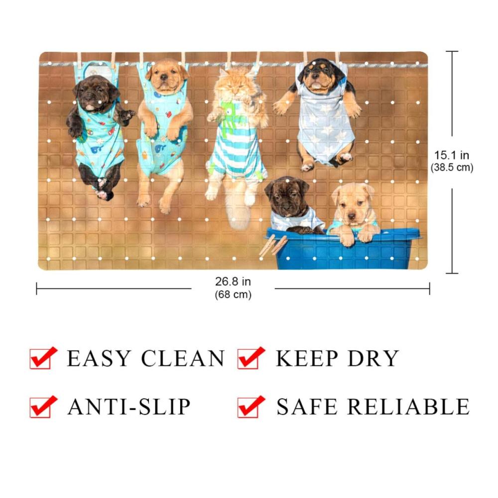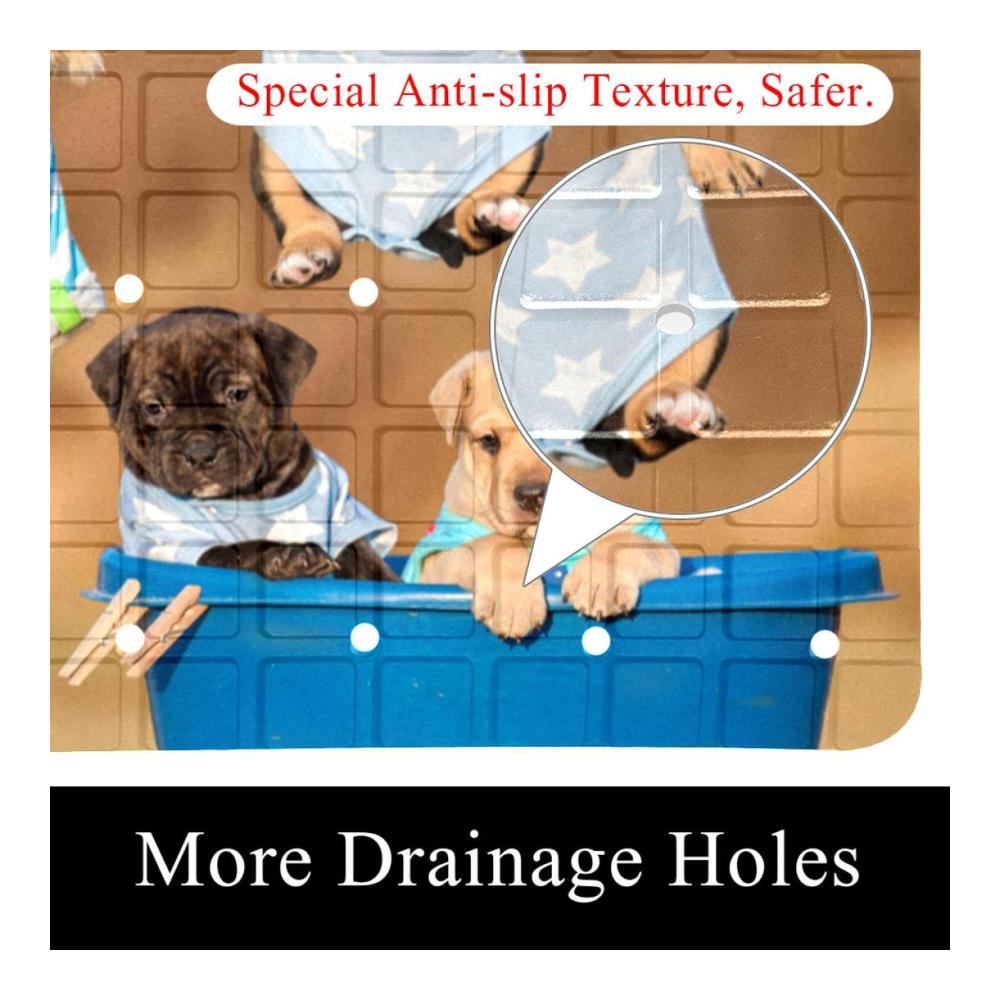 Sicherheit und Spaß vereint: Unsere Badewannenmatte mit niedlichem Hundemotiv bietet Komfort und Schutz in Ihrem Badezimmer. Die rutschfeste Oberfläche mit 98 Abflusslöchern gewährleistet maximale Sicherheit beim Duschen und Baden. Dank der 112 Saugnäpfe bleibt die Matte stabil an ihrem Platz. Hergestellt aus leicht zu reinigendem PVC, ist sie anpassbar und misst 38,5 x 68 cm. Genießen Sie sorgenfreie Badezeit mit unserer hochwertigen Badematte!</span
