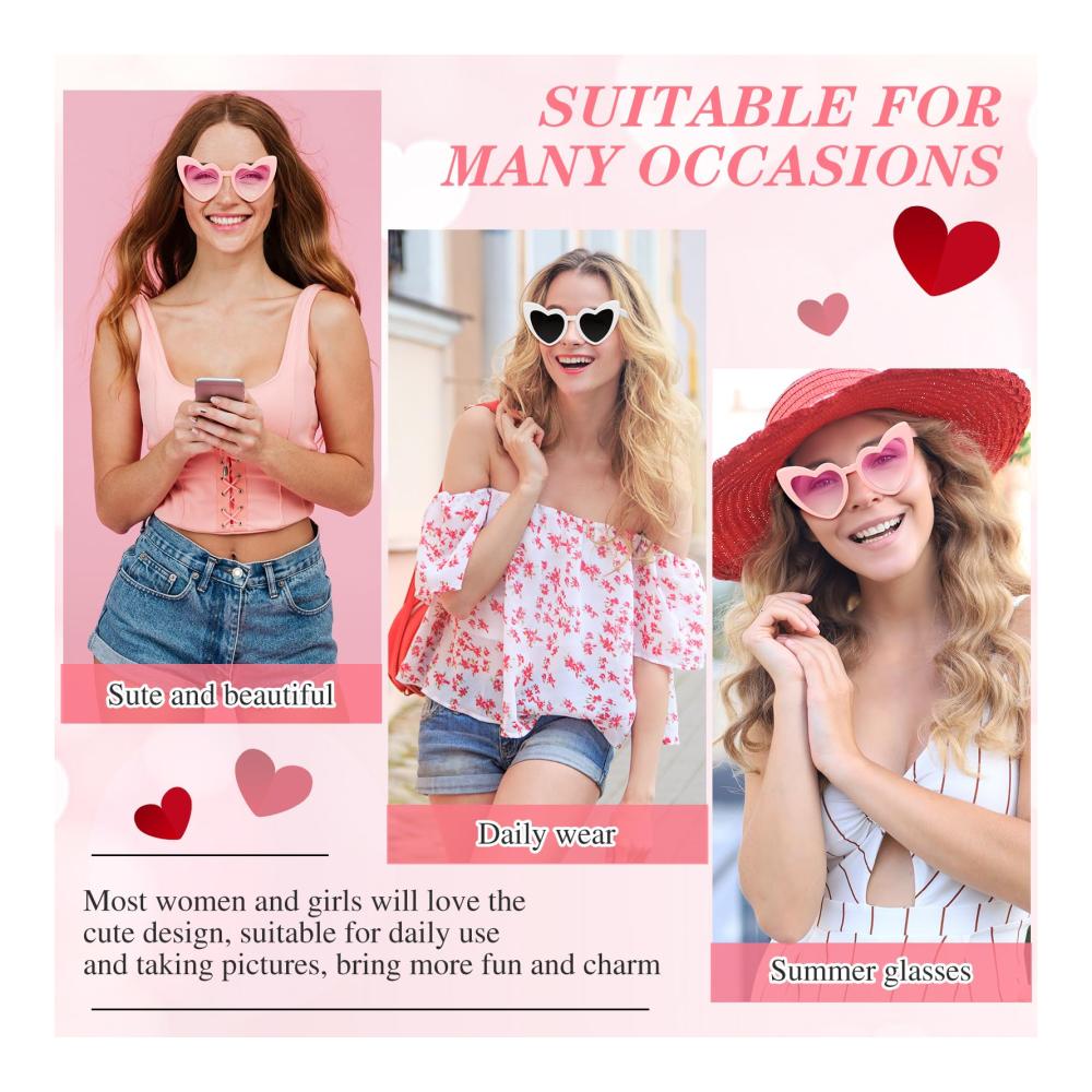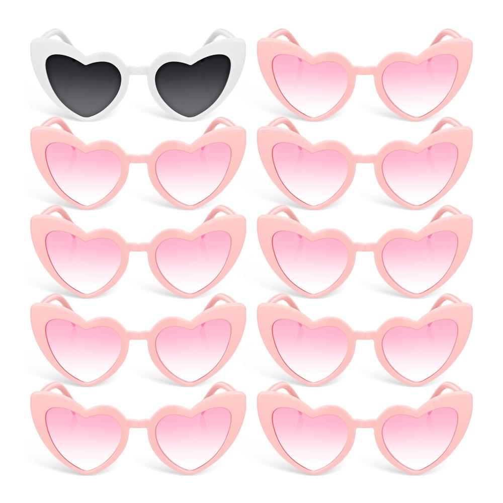 Idealer Partygeschenk: Jedes Paket enthält 10 Stück Retro Herz Sonnenbrillen für den Junggesellenabschied, davon 1 hauptsächlich in Weiß und 9 in Rosa. Sie sind der ideale Partygeschenk und können von der Braut und ihrer Gruppe von Damen oder Mädchen geteilt werden, um ein unvergessliches Foto zu schaffen Chancen und verbindende Momente
