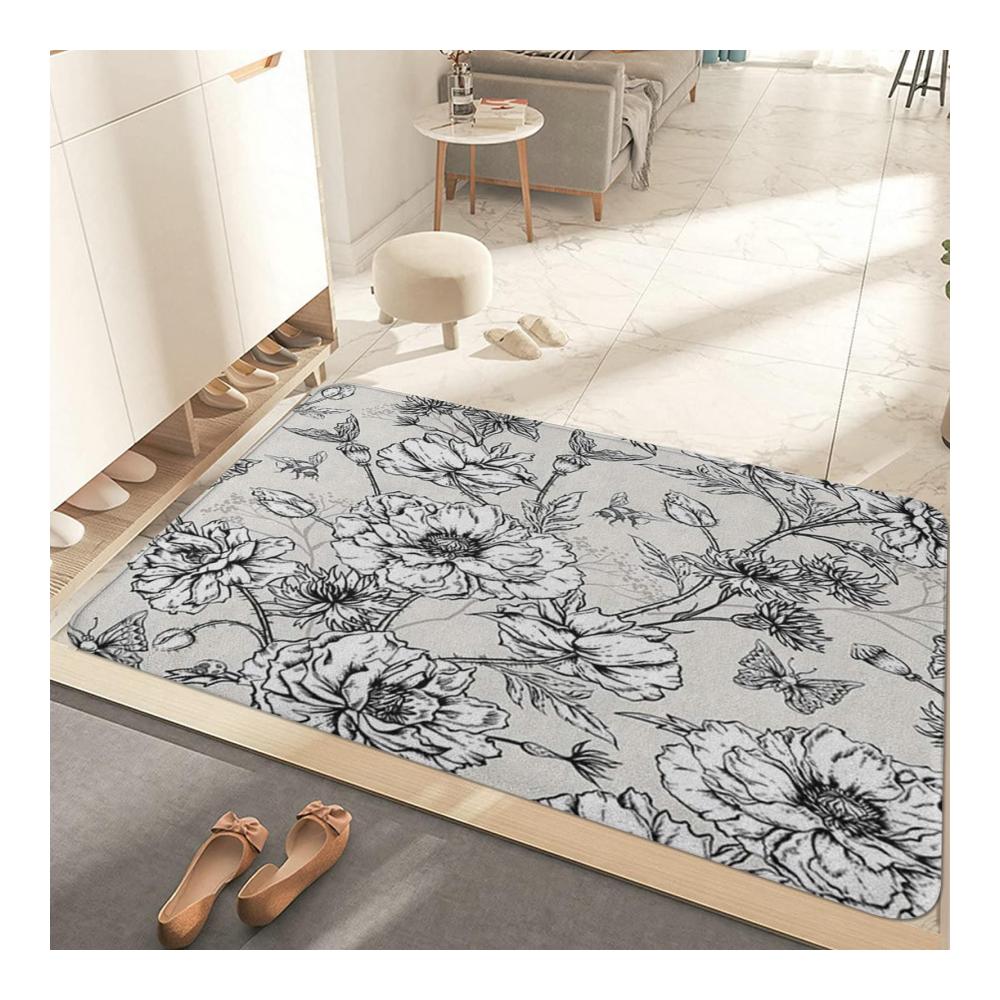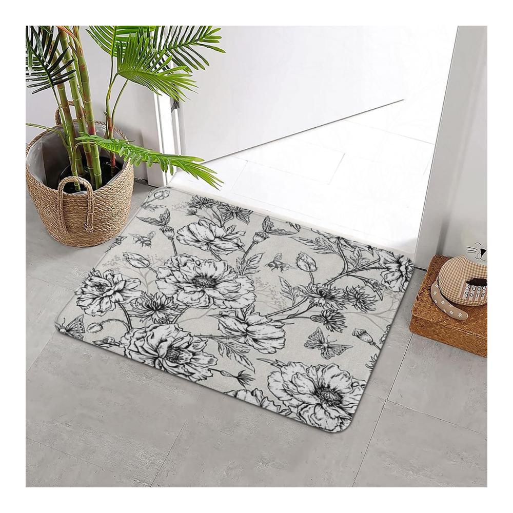 ❀ Luxuriöser Badteppich: Sommerliche Vintage-Blumenmuster mit rutschfester Unterlage | Wasserabsorbierend & maschinenwaschbar | Ideal für Dusche & Badewanne | 40x60cm