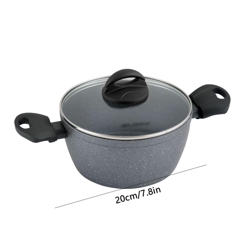 Merkmale 20 cm Durchmesser/Aluminium Hergestellt aus Aluminium. Antihaftbeschichteter 5-lagiger Lavastein ohne PFOA. 5-mal widerstandsfähiger gegen Abrieb, Stöße und Kratzer. Ergonomische Soft-Touch-Griffe, übertragen keine Wärme. Geeignet für jede Art von Küche: Induktion, Glaskeramik, Elektro, Gas. Deckel aus gehärtetem Glas mit Dampfventil. Durchmesser von 20 cm. Kontaktinformationen des Herstellers: Bezirk Xiuying, Stadt Haikou, Provinz Hainan