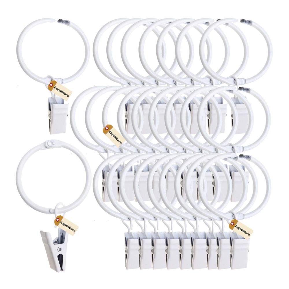 [Packungsinhalt]: 30pcs aufklappbare Vorhangringe mit Clips weiß 2 Zoll, die Vorhangclips können entfernt werden