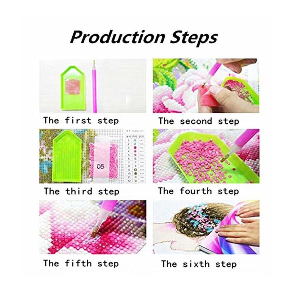 [Diamond Art Easy and Fun]: Fliesen Sie die Leinwand und ziehen Sie ein kleines Stück Schutzfolie ab, um einen nummerierten Diamanten zu fertigen, bevor Sie zum nächsten weitergehen. Es kann auch von oben nach unten Schritt für Schritt durchgeführt werden, was sehr interessant im Prozess ist.