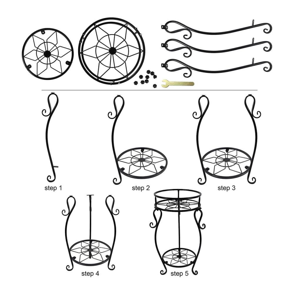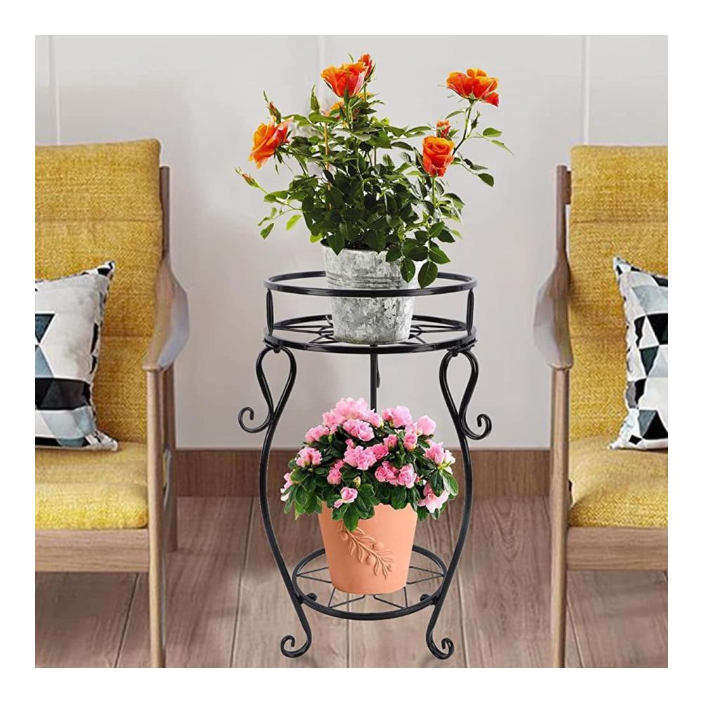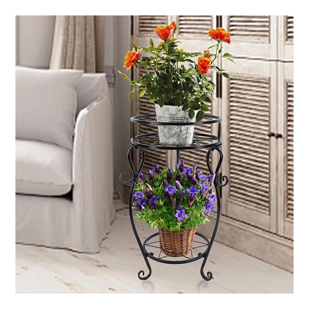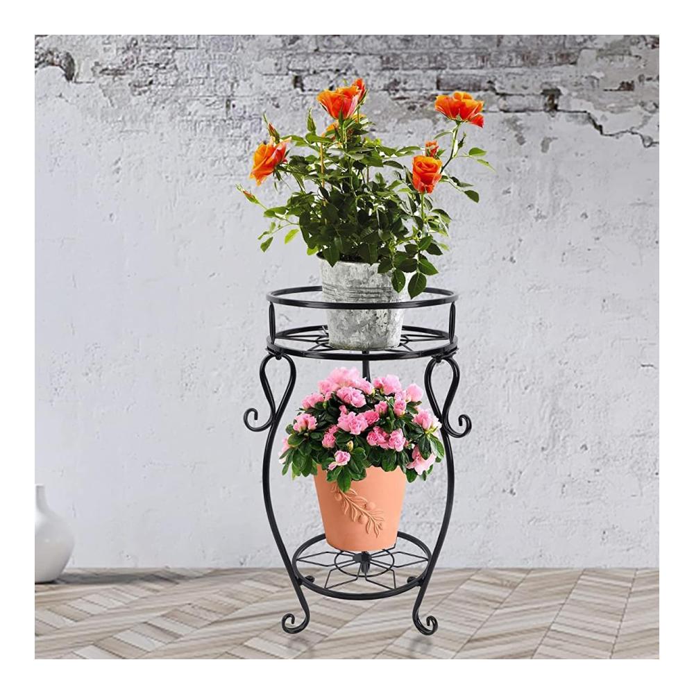 Entdecken Sie zeitloses Design mit unserem Eisen-Pflanzenständer für drinnen und draußen. Das 2-stöckige Blumentopf-Halter-Regal ist ein robuster Topf-Blumentopf-Organizer aus Schmiedeeisen, ideal für Ihren Garten.