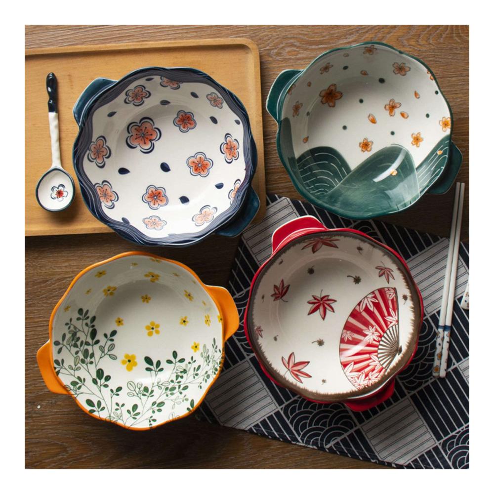 Diese vielseitigen Keramik-Ramen-Schüsseln eignen sich perfekt als Rührschüsseln für Ihre Koch- und Backanforderungen. Ob Sie eine köstliche Nudelsuppe zubereiten oder Zutaten für Ihr nächstes Backprojekt mischen, diese Schüsseln mit Griffen bieten Komfort und Stil.
