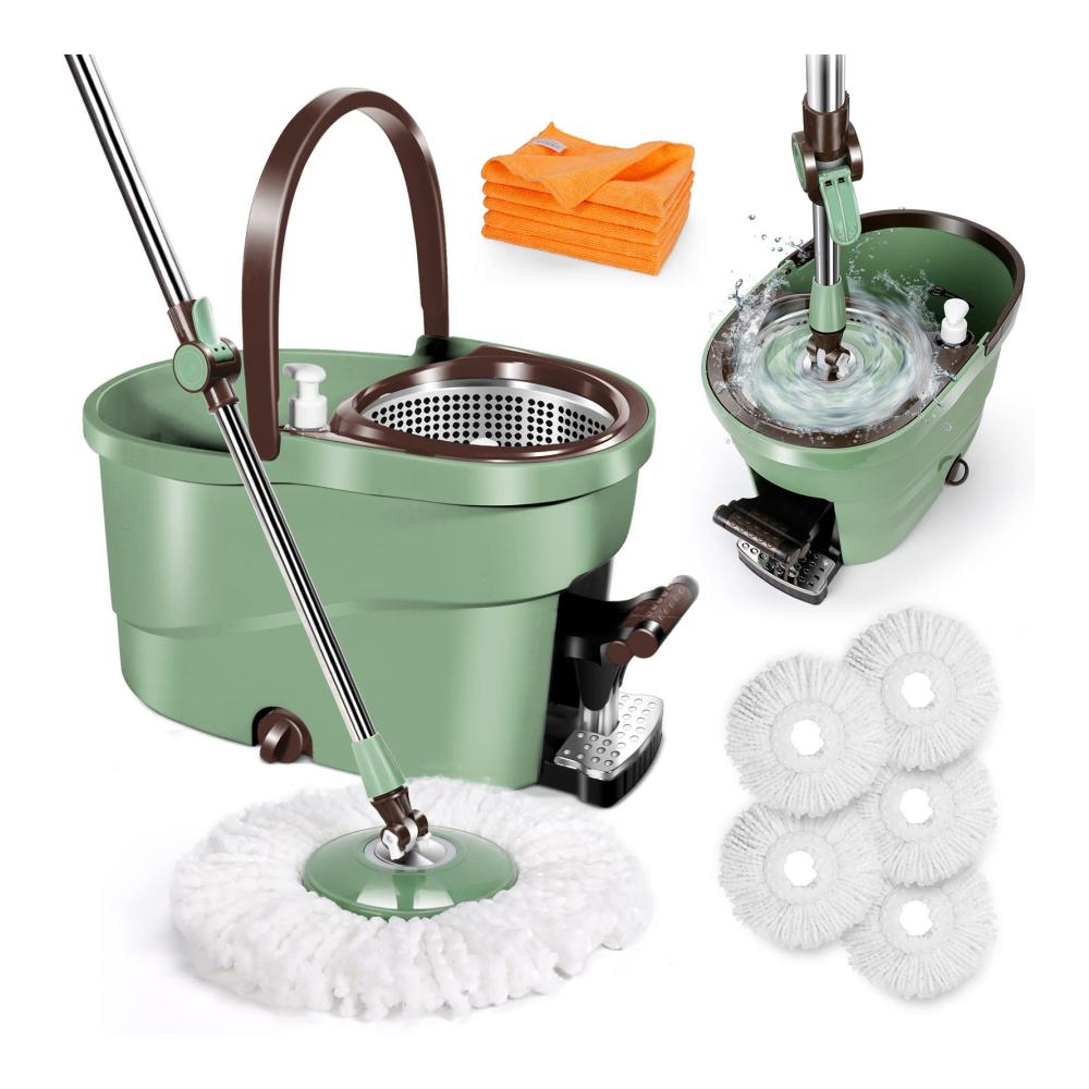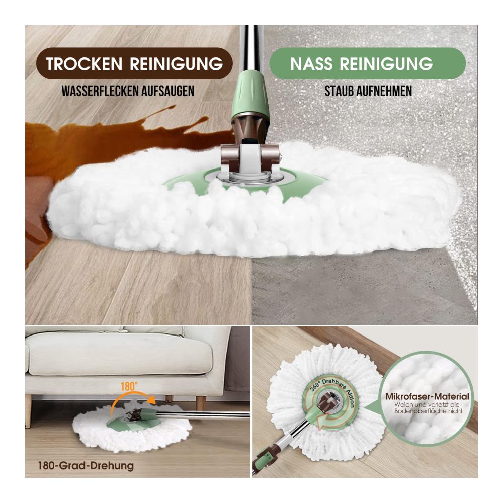 Das Set wird mit insgesamt 5 Mikrofaser Ersatzköpfen geliefert, sodass Sie immer einen sauberen Kopf zur Hand haben. Diese hochwertigen Mikrofasertücher sorgen für eine effektive Reinigung und hinterlassen Ihre Böden makellos. Der Spin Mop eignet sich ideal für die Reinigung verschiedener Bodenbeläge, von Fliesen über Holz bis hin zu Laminat.