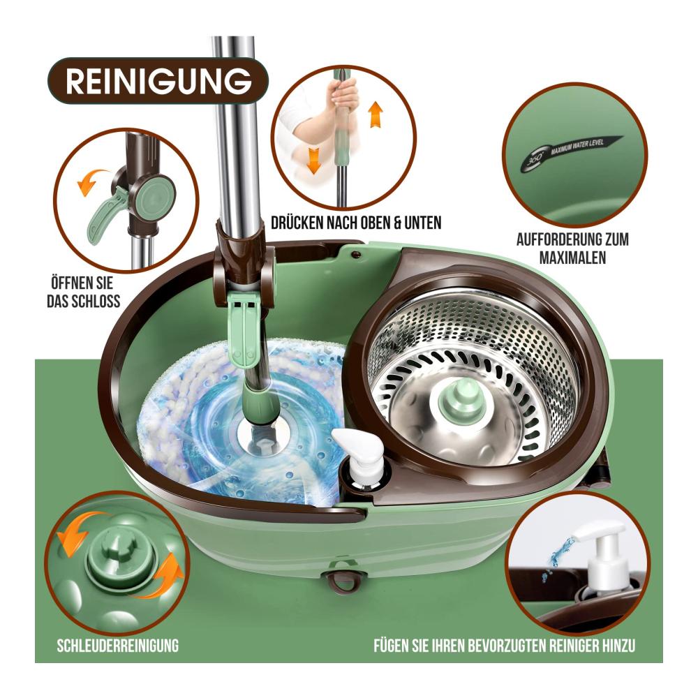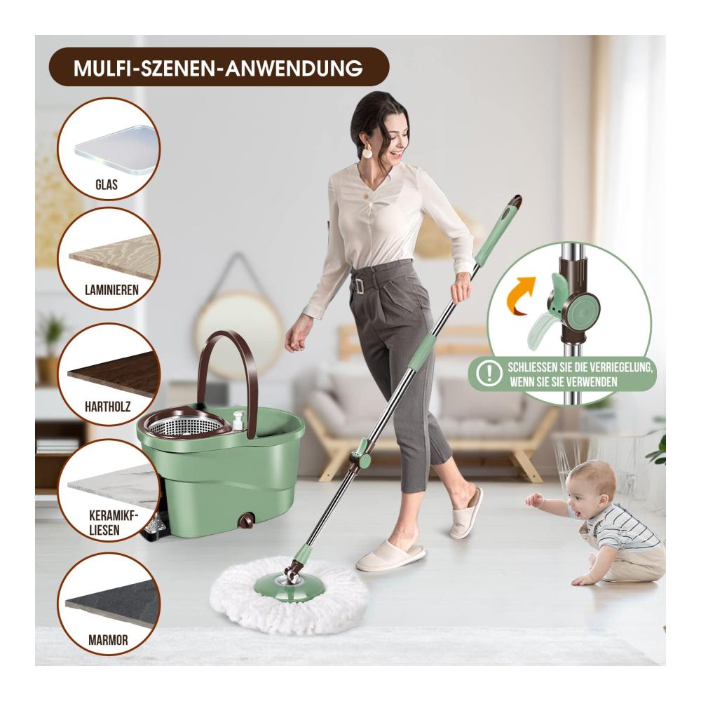 Egal, ob Sie den Boden in der Küche, im Wohnzimmer oder im Bad reinigen möchten, dieses Set macht die Aufgabe zum Kinderspiel. Halten Sie Ihr Zuhause mit diesem praktischen Wischmopp Set mit Eimer sauber und ordentlich.