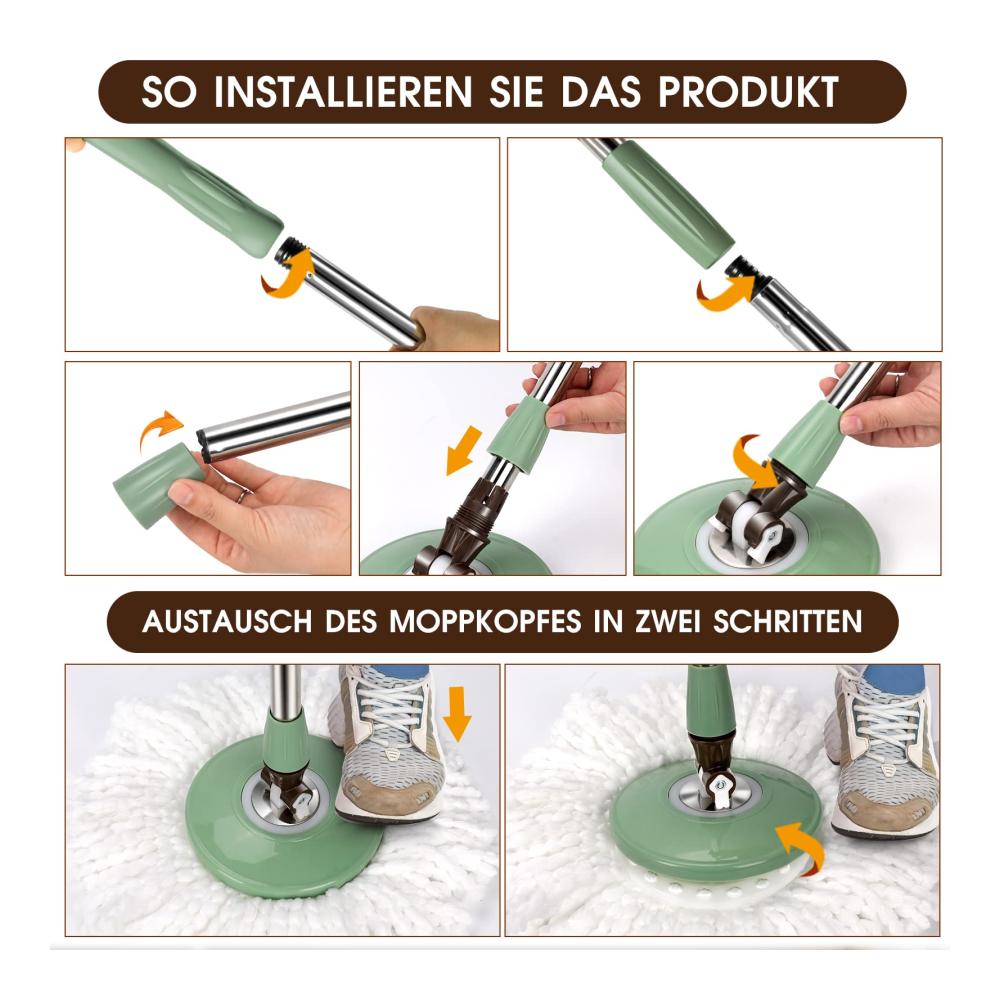 [Mehrere Szenen anwendbar]: Der Mikrofaser Mopp kann als Nass- oder Trockenmopp verwendet werden und ist für alle Arten von Oberflächen wie Hartholz, Laminat, Fliesen, Glas usw. geeignet. Das Spin-Mop-Set enthält eine Reinigungsmittelflasche zum Hinzufügen Ihr Lieblingswaschmittel, um die Reinigung effizienter zu gestalten!