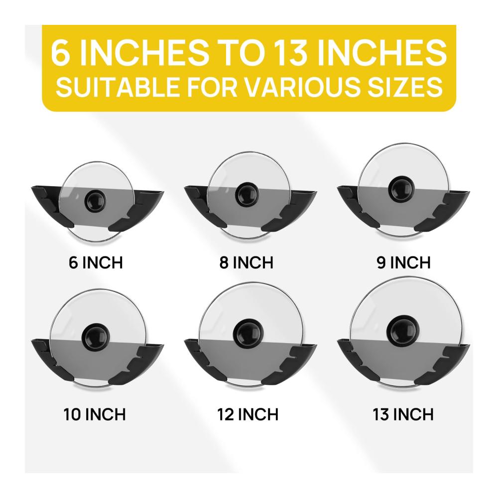 【Weitgehend Kompatibel】Der an der Wand montierte Topfdeckelhalter ist gut kompatibel, eignet sich für Topfdeckel mit einem Durchmesser von 15 cm bis 33 cm und passt perfekt auf die meisten Topfdeckel auf dem Markt