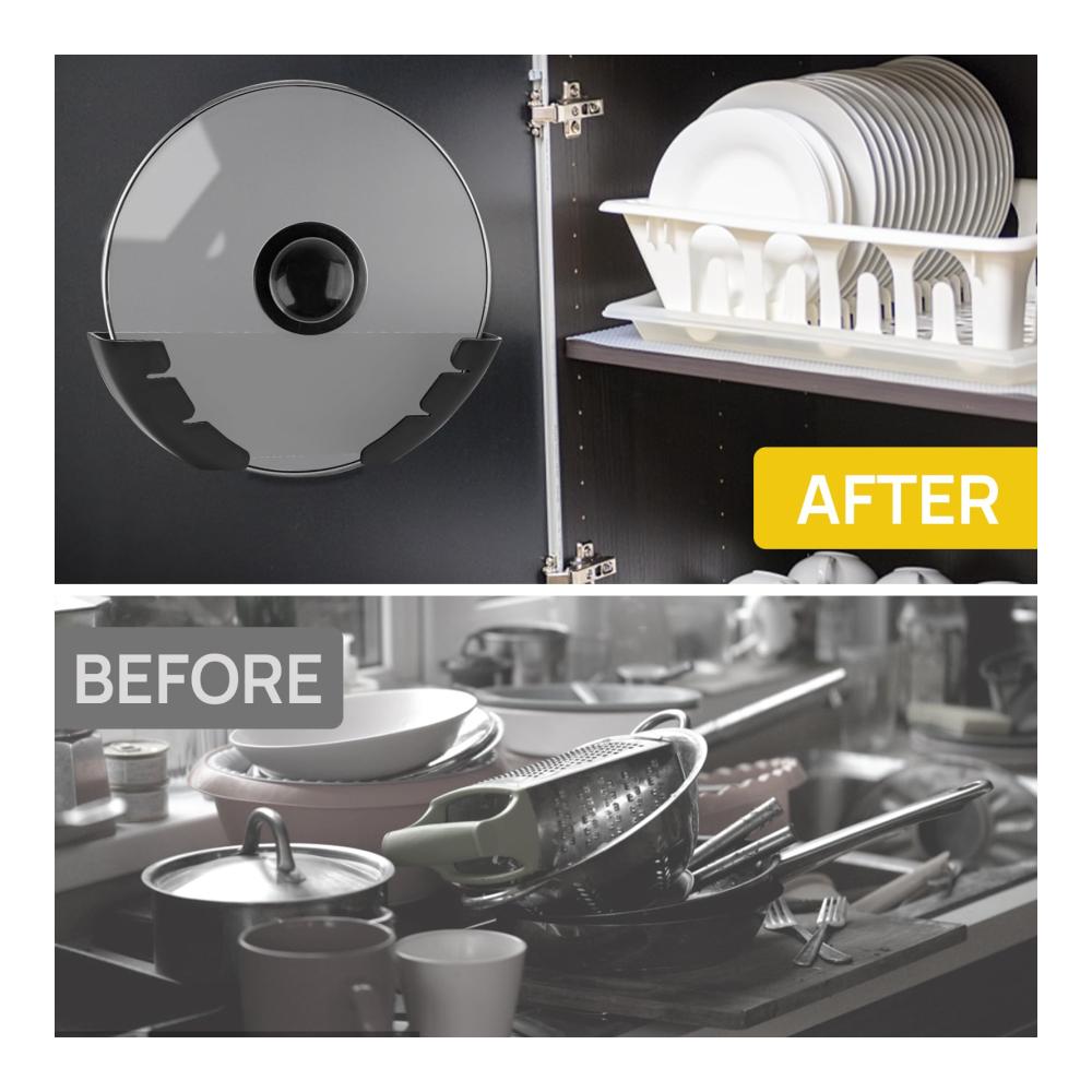 3. Mit diesem Topfdeckelhalter können Sie bei der Organisation Ihrer Küche helfen und Topfdeckel organisiert und leicht zugänglich halten.