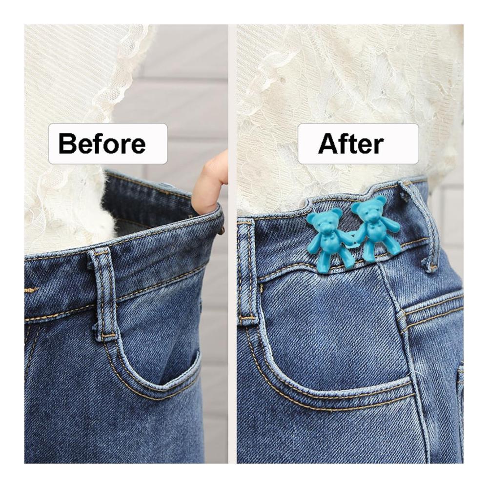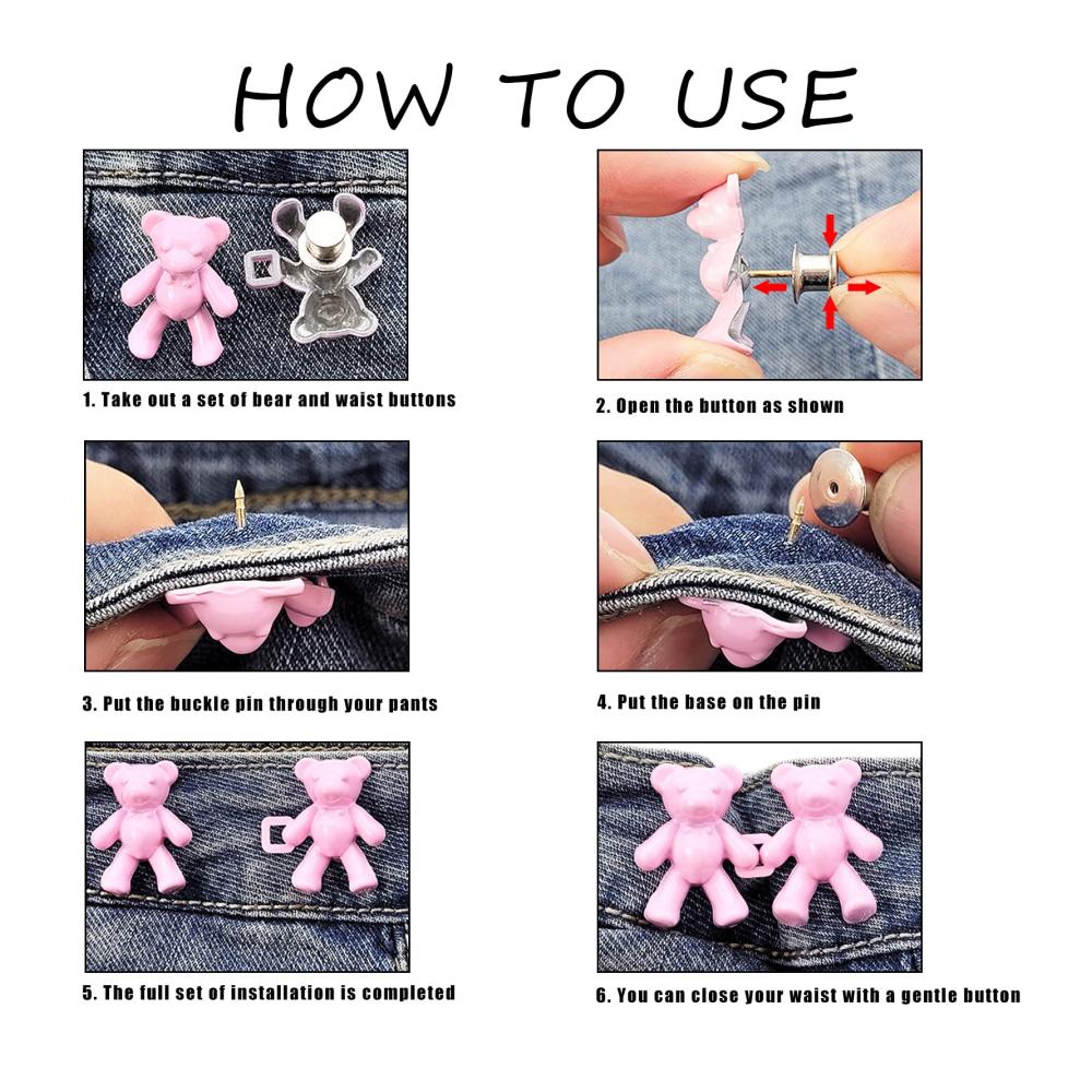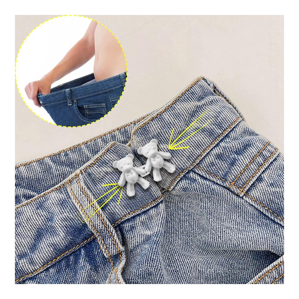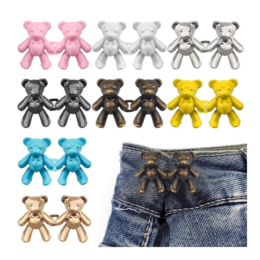 8 Paar süße Bären-Jeansknopfnadeln – Kein Nähen, abnehmbare Taillenkörperverlängerung für Jeans