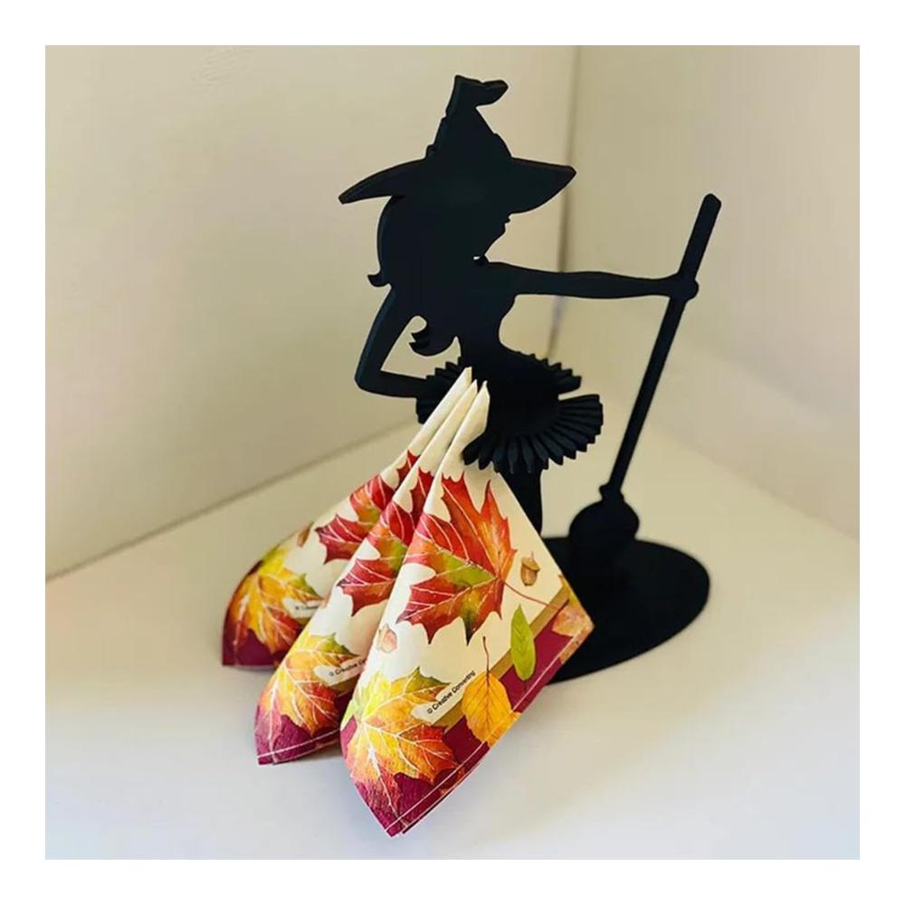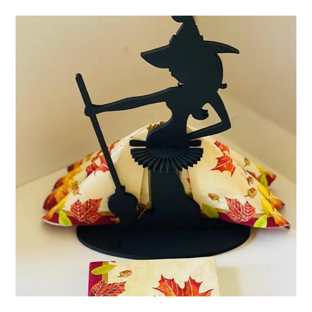 1 Ein hölzerner Halloween-Hexen-Serviettenhalter verleiht Ihrem Tisch eine charmante und unverwechselbare Note