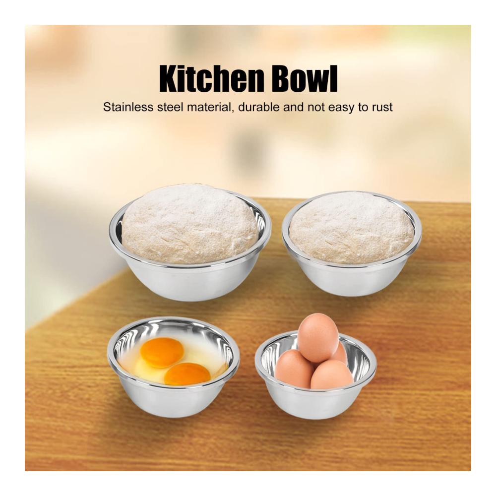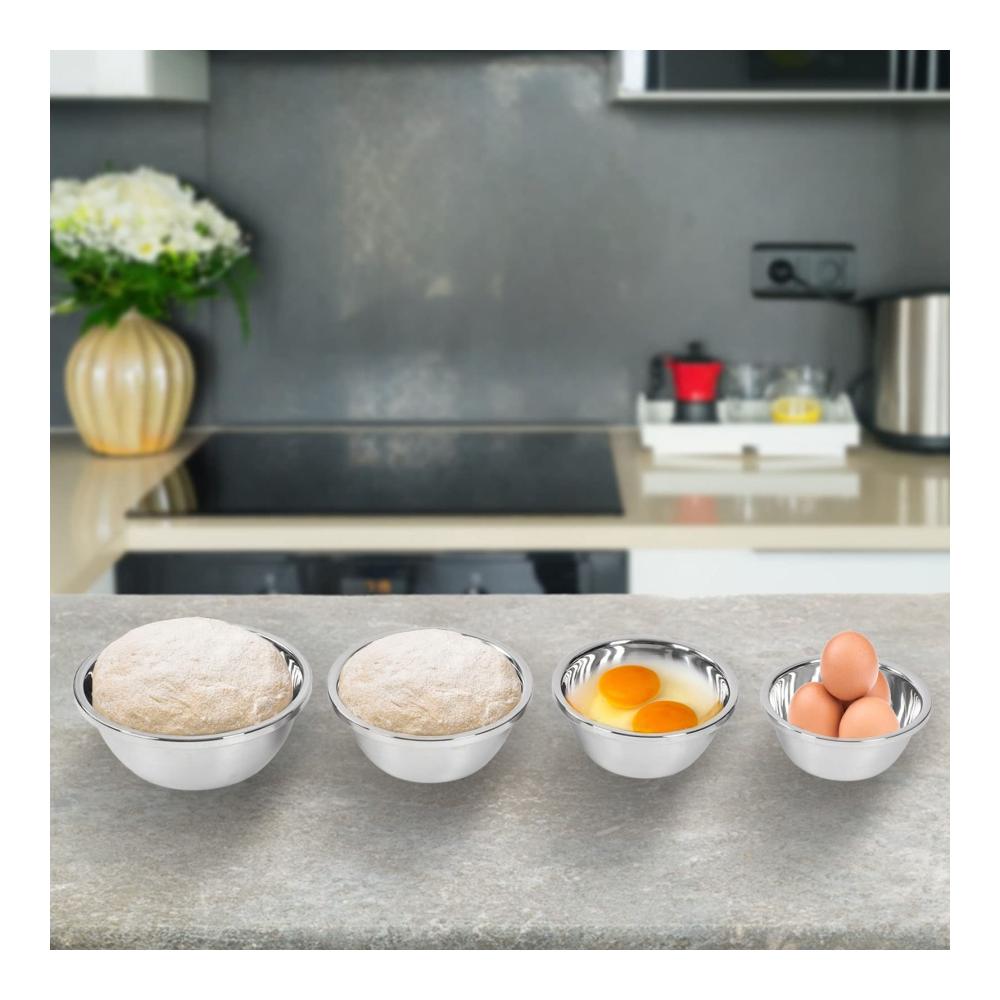 Erleichtern Sie Ihre Küchenarbeit mit unserem 4-teiligen Rührschüssel-Set. Hergestellt aus hochwertigem Edelstahl sind diese stapelbaren Schüsseln langlebig und leicht, perfekt für Koch- und Backaufgaben. Die abgerundeten Seiten bieten einen sicheren Griff, während der flache Boden Stabilität beim Mischen gewährleistet. Dank ihres platzsparenden Designs können sie einfach verstaut werden. Vielseitig einsetzbar und spülmaschinenfest – ein unverzichtbares Utensil für jede Küche!