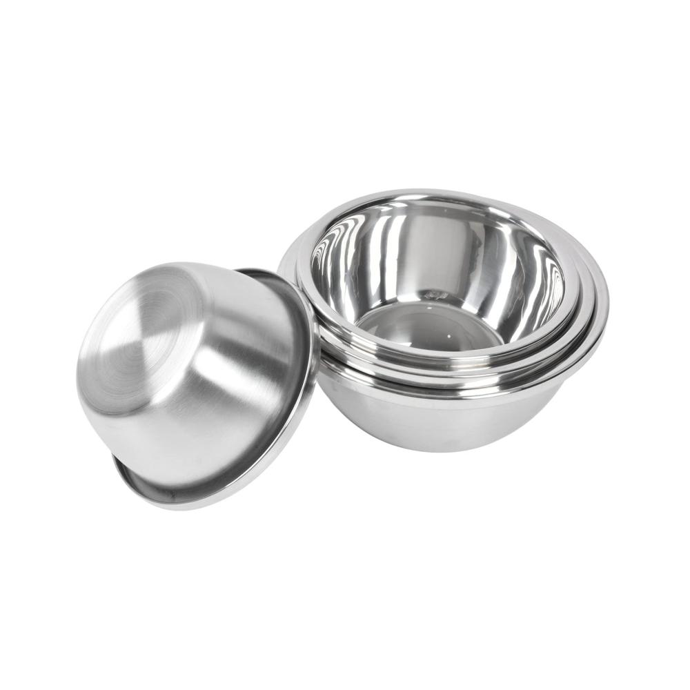 Platz sparen: Rührschüsseln aus Edelstahl können ineinander geschachtelt werden. Das platzsparende, stapelbare Design sorgt für Ordnung in den Küchenschränken und kann Ihren Raum attraktiver gestalten, um Ihren unterschiedlichen Anforderungen gerecht zu werden.