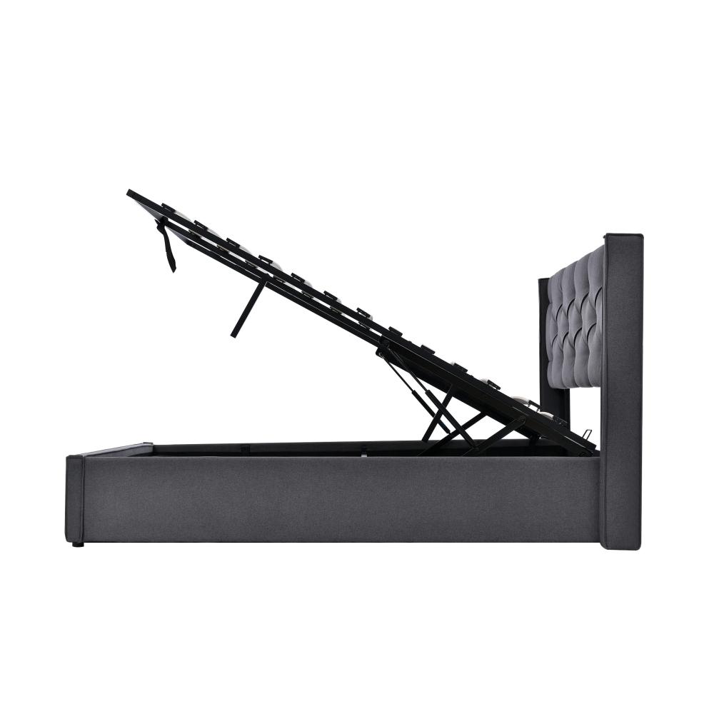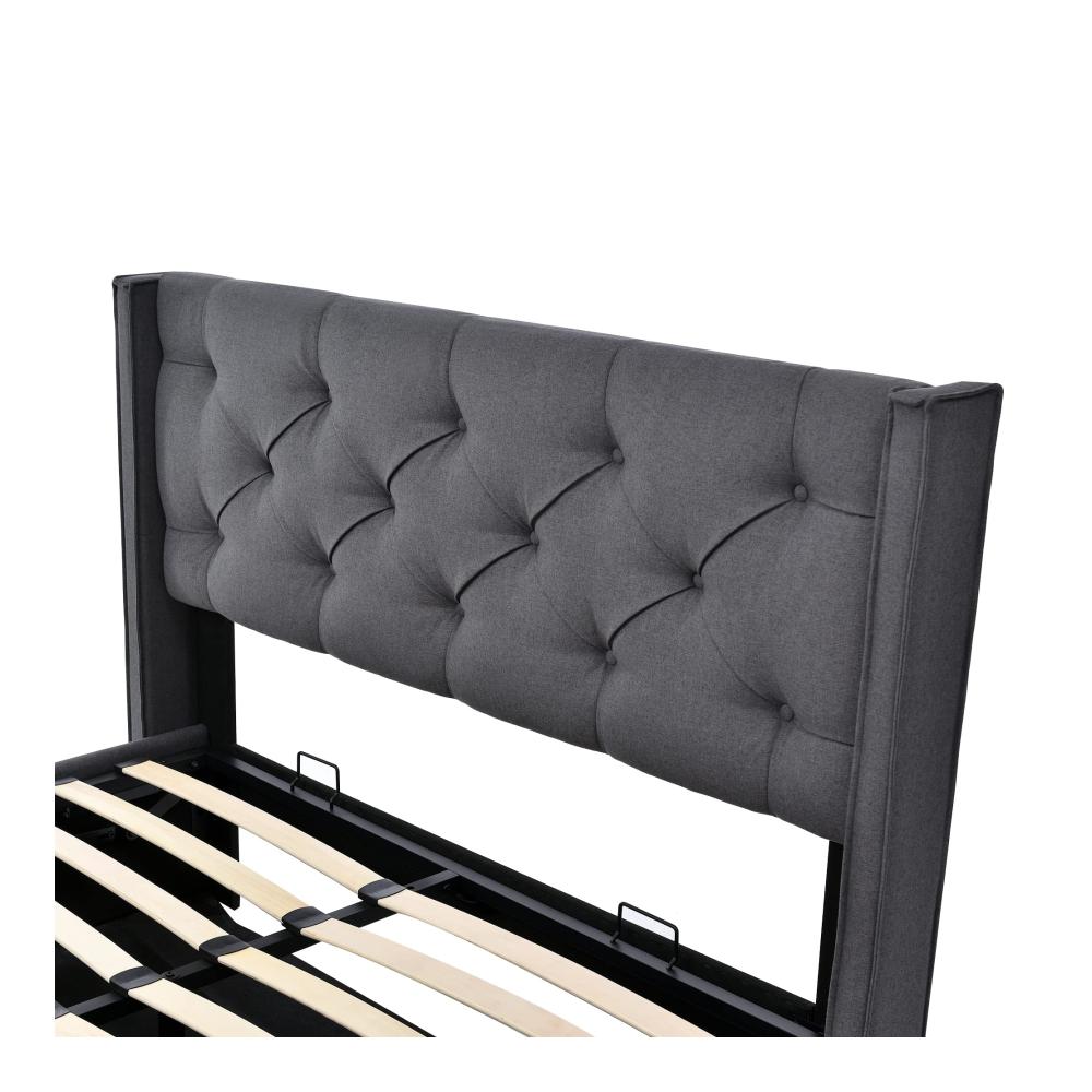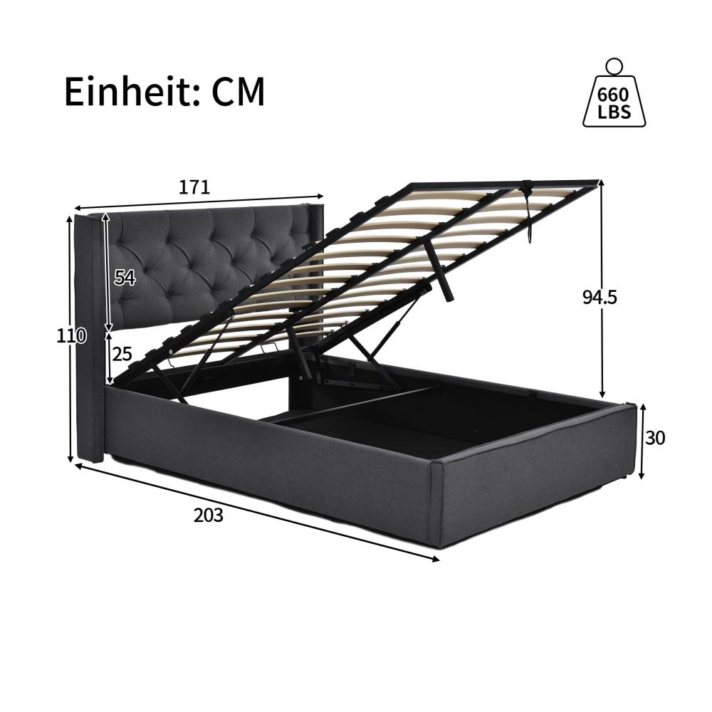 🛌Speicherdesign: Großer Bettkasten unterhalb des hochklappbaren Lattenrosts mit viel Stauraum für die Aufbewahrung von Decken, Kissen oder Bettwäsche, Lattenrost durch Hubzylinder leicht hochklappbar. An der Unterseite des Bettes ist ein Oxford-Tuch angebracht, um Staub fernzuhalten.