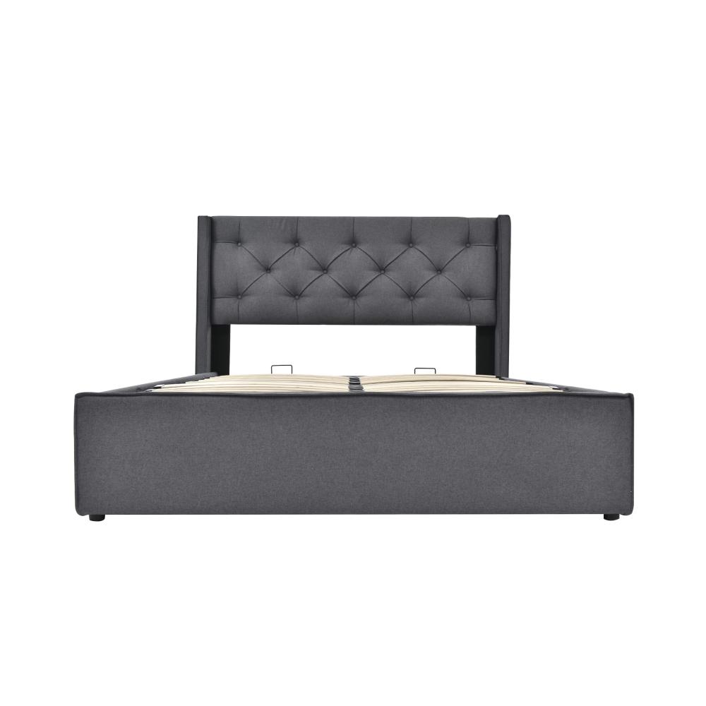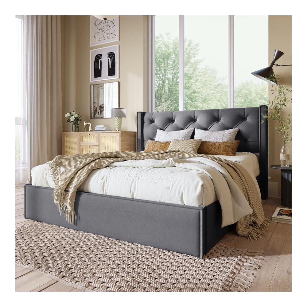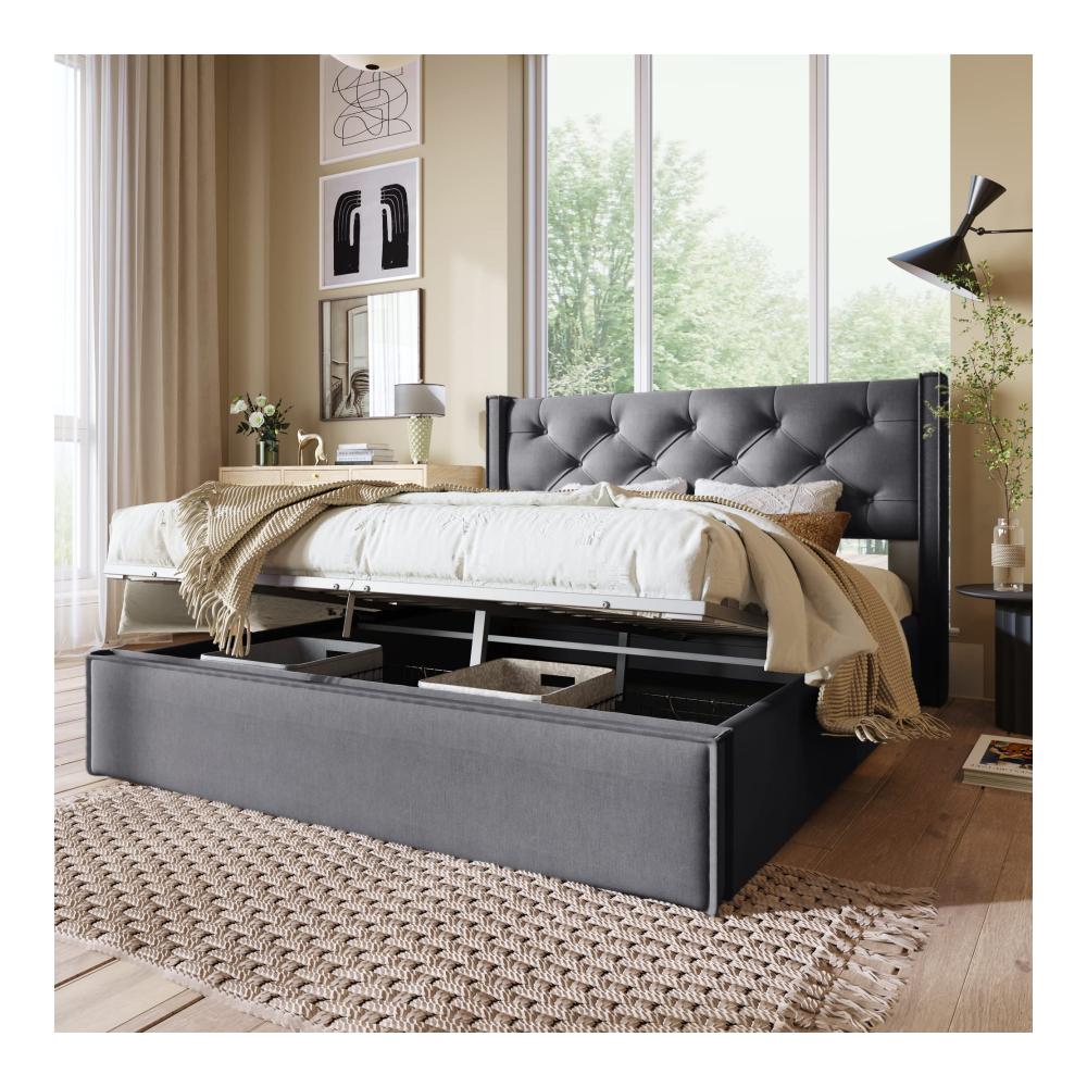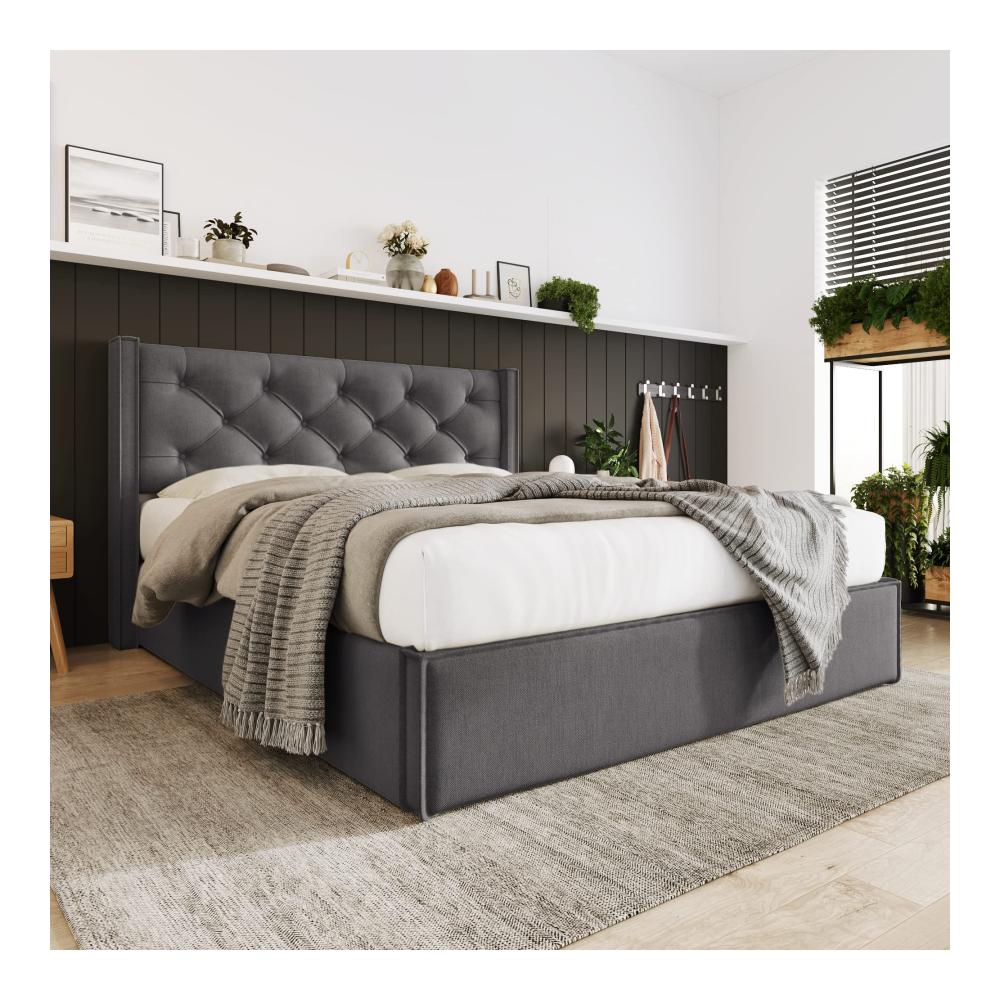 🛌Speicherdesign: Großer Bettkasten unterhalb des hochklappbaren Lattenrosts mit viel Stauraum für die Aufbewahrung von Decken, Kissen oder Bettwäsche, Lattenrost durch Hubzylinder leicht hochklappbar. An der Unterseite des Bettes ist ein Oxford-Tuch angebracht, um Staub fernzuhalten.