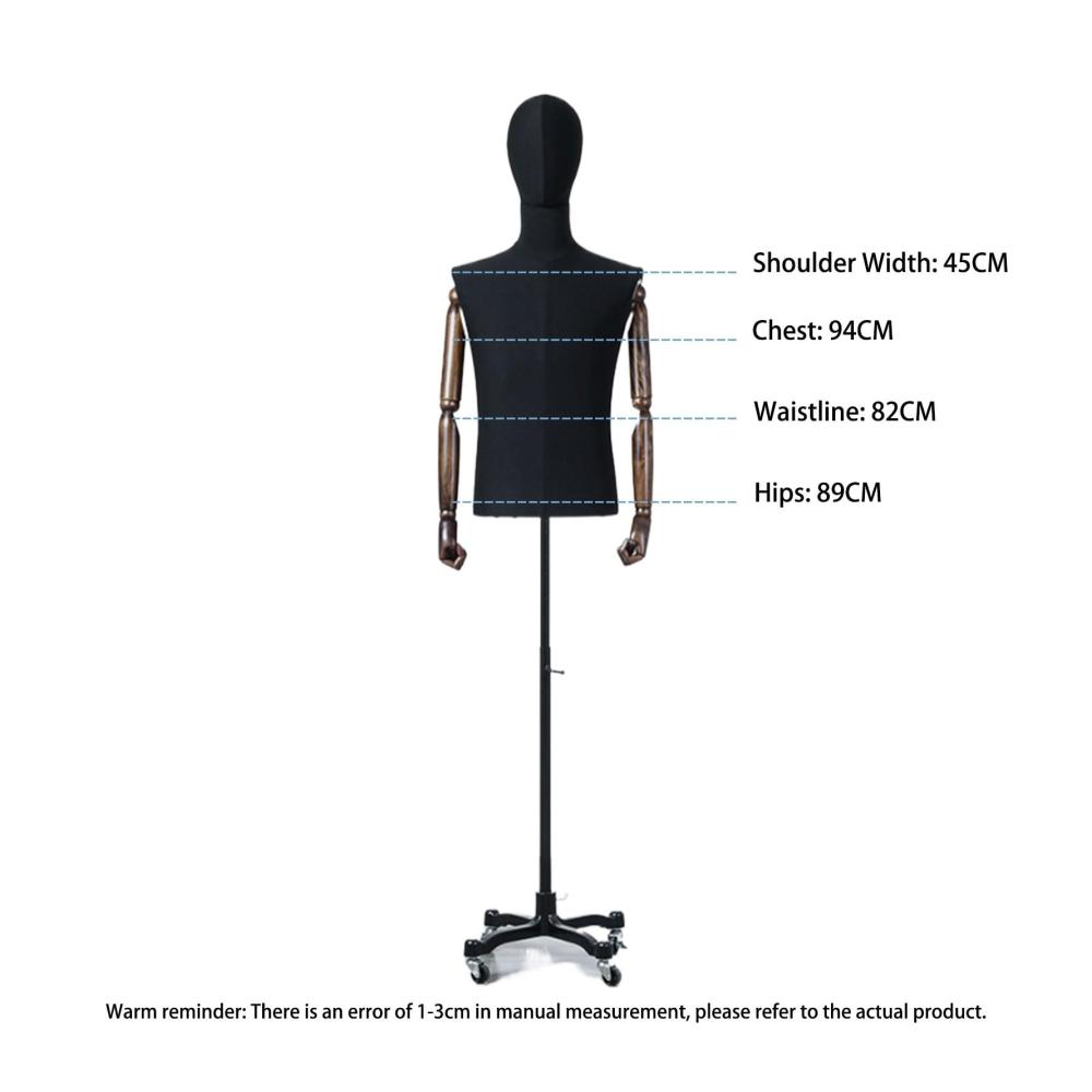 Schaufensterpuppen in Torso-Kleiderform mit Holzarmen und Sockel zum Nähen, für Kleidung und Schmuck. Hochwertige Materialien, realistische Roboterarme und sich ständig ändernde Formen – Sie können damit Ihre Produkte auf Fenstern, Theken, Etagendisplays oder auf dem Boden präsentieren.Merkmale:1. Einfache Montage und Demontage.2. Präsentieren Sie es in Schaufenstern und machen Sie Ihre Geschäfte attraktiver.3. Zeigen Sie Ihre Kleidung, um viele mögliche Outfits zu sehen.Halblanger Kleiderbügel für HerrenbekleidungProduktspezifikationBasistyp: Quadrat, Kreis, Dreieck, UniversalradSchulterbreite: 17,71″/45cmBrustumfang: 37″/94cmTaille: 32,28″/82 cmHüfte: 35,03″/89 cmBitte beachten Sie:1. Aufgrund von Faktoren wie Licht und Monitoreinstellungen kann es zu geringfügigen Farbunterschieden zwischen dem Bild und dem tatsächlichen Produkt kommen. Bitte beziehen Sie sich am Ende auf das tatsächliche Produkt!2. Aufgrund unterschiedlicher manueller Messmethoden tritt ein Fehler von 0 bis 2 cm auf, der innerhalb eines angemessenen Bereichs liegt. Bitte haben Sie Verständnis!