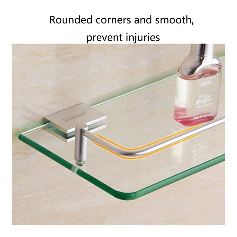 【Rail Protect Design】 Dieses Glasregal mit Schiene eignet sich hervorragend zum Aufbewahren von Kosmetika und Toilettenartikeln. Außerdem wird sichergestellt, dass die Dinge im Regal bleiben und nicht auf dem Boden landen.