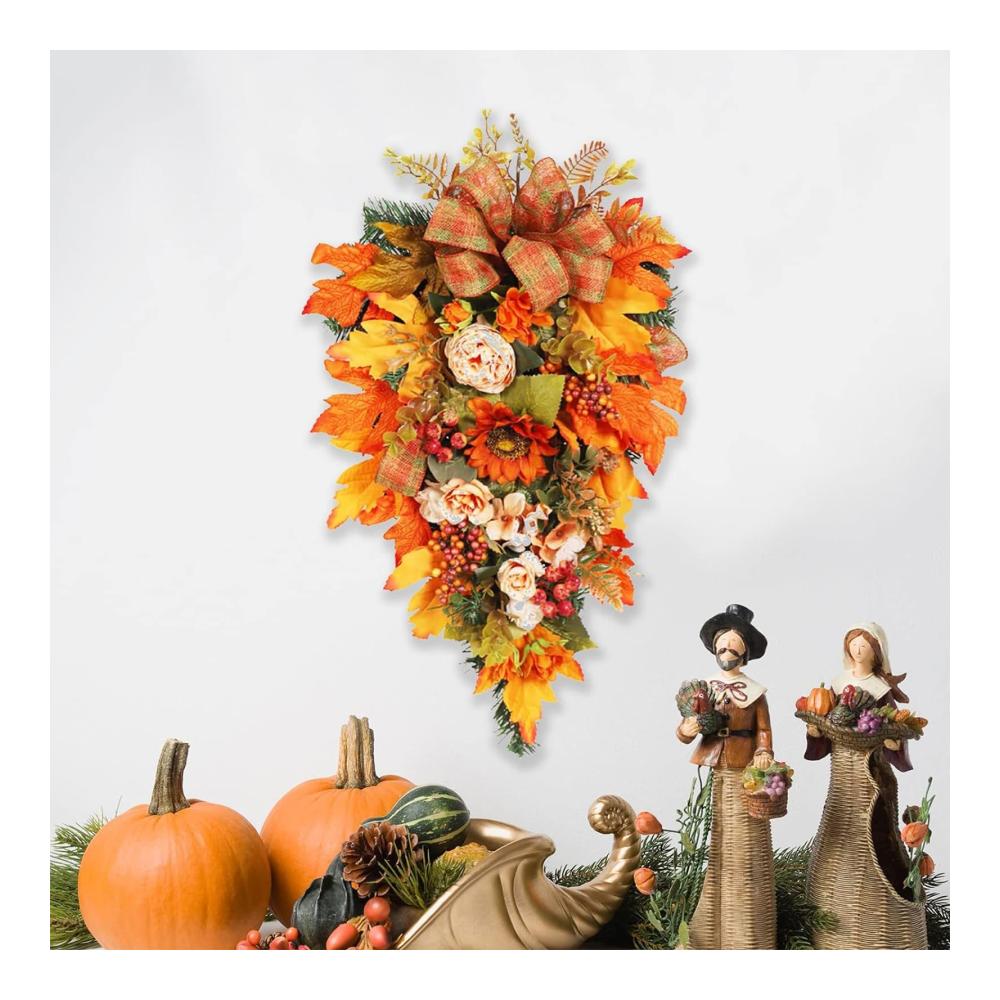 【Ideales Geschenk】 Der tropfenförmige Herbst-Ernte-Swag ist das perfekte Geschenk für Ihre Freunde und Familien zum Einweihungstag, Geburtstag, Erntedankfest, Weihnachten, Hochzeit und anderen Festen. Er kann sowohl drinnen als auch draußen verwendet werden und ist die perfekte Dekoration zur festlichen Atmosphäre.