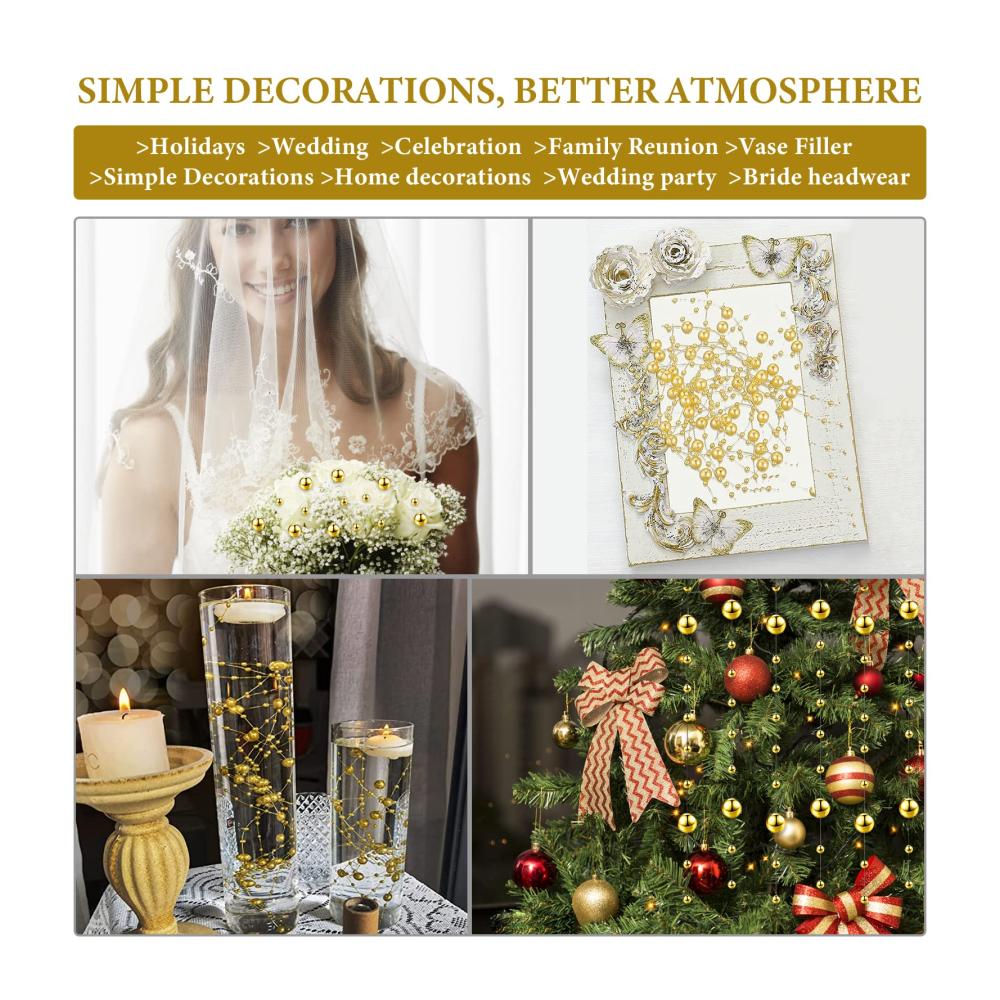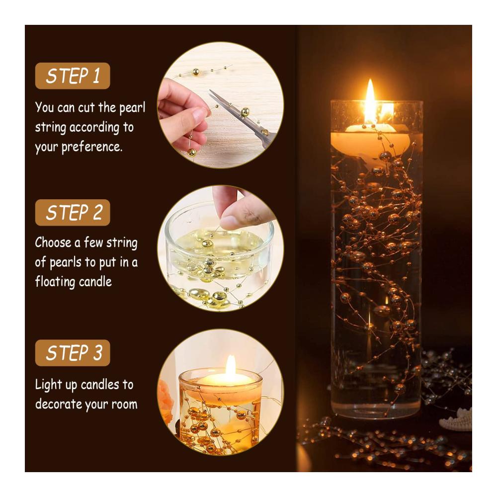 【Breite Anwendung】 Der künstliche Perlenschnur ist ideal für schwimmende Kerzen und Vasenfüller, kann für verschiedene Anlässe verwendet werden, wie Hochzeitsfeiern, Brautsträuße, Partys, Jahrestage, Verlobungen, Valentinstag, Abschlussfeiern, Weihnachtsdekorationen oder Geburtstagsfeiern. Ideales Zubehör für Braut-Kopfbedeckungen, Foto-Requisiten, Kuchendekorationen und Bastelprojekte