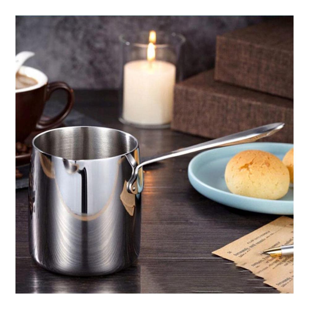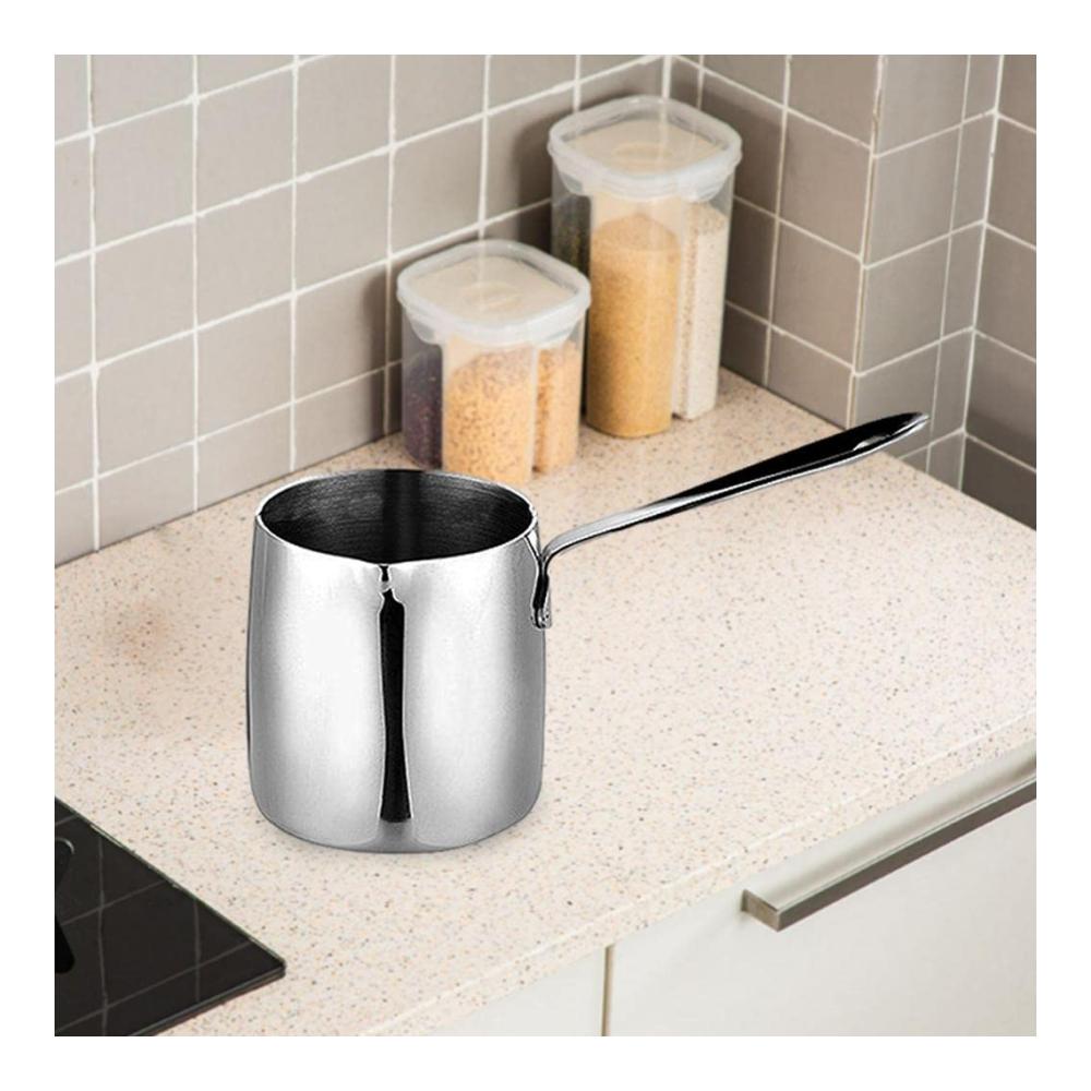Genießen Sie authentischen türkischen Kaffee mit unserer hochwertigen Kaffeekanne aus Edelstahl. Der genietete Griff mit Aufhängelöchern sorgt für bequeme Handhabung. Hergestellt aus unbeschichtetem Edelstahl 304, ist sie für verschiedene Herdarten geeignet, einschließlich Induktion. Das praktische Design ermöglicht ein einfaches Ausgießen von Saucen oder Flüssigkeiten. Vielseitig einsetzbar, ideal für Kaffee und vieles mehr.